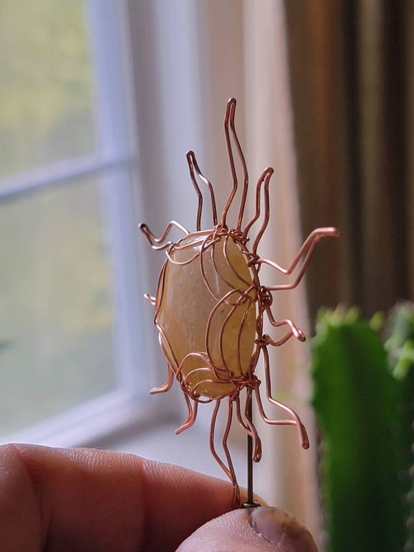 Sunstone Sun Cabochon Brooch, wrapped in copper.
