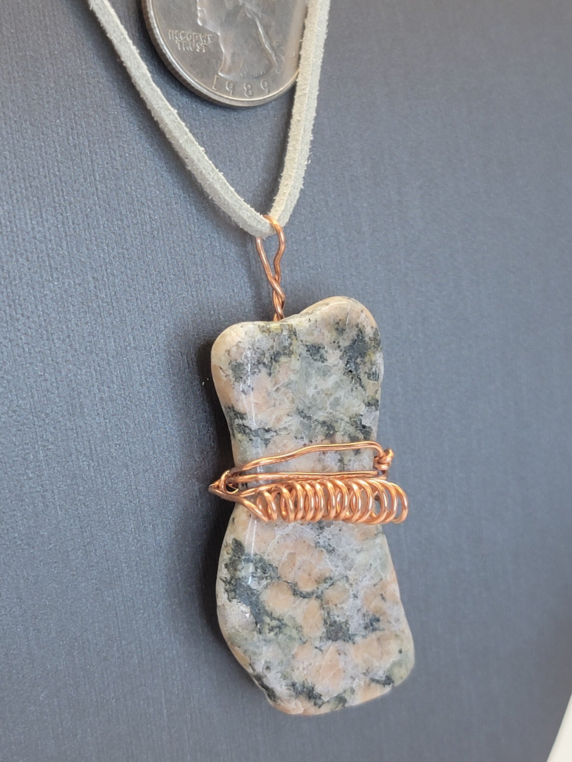 Pendant & Necklace Rhodonite Crystal, Cabochon, Wire wrapped