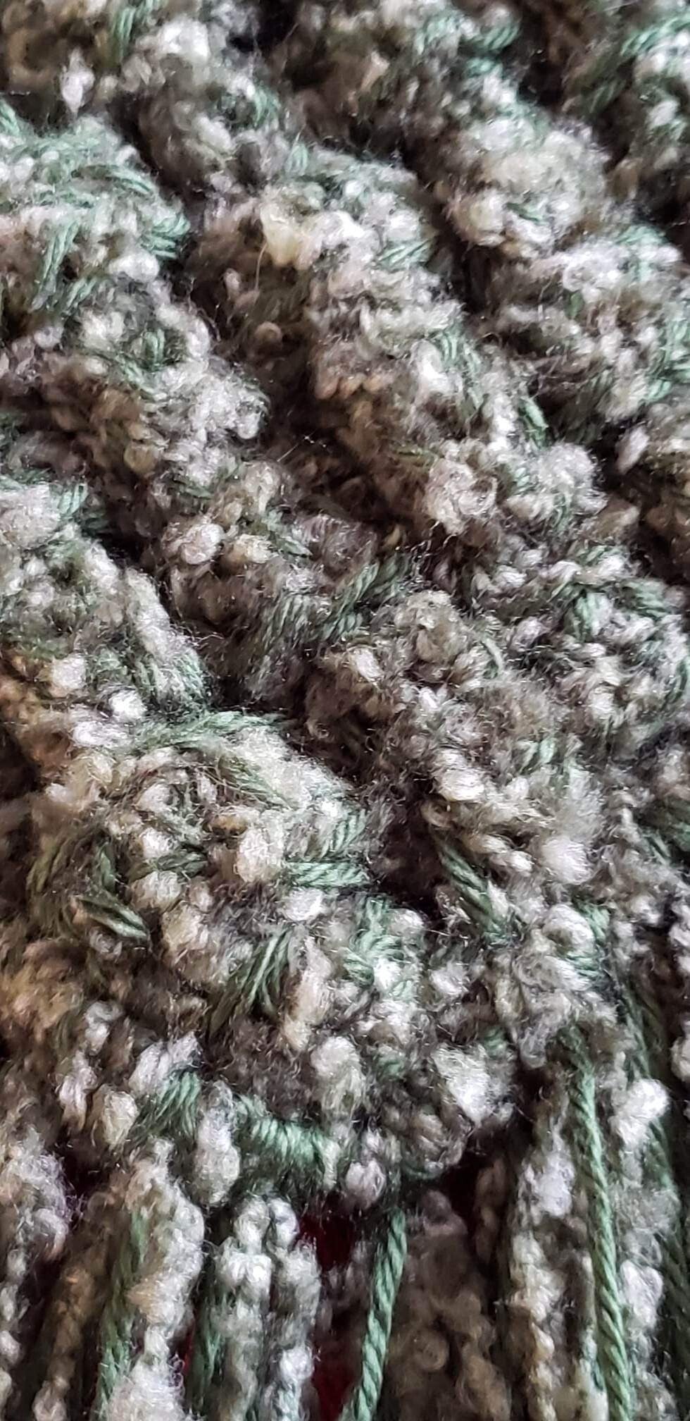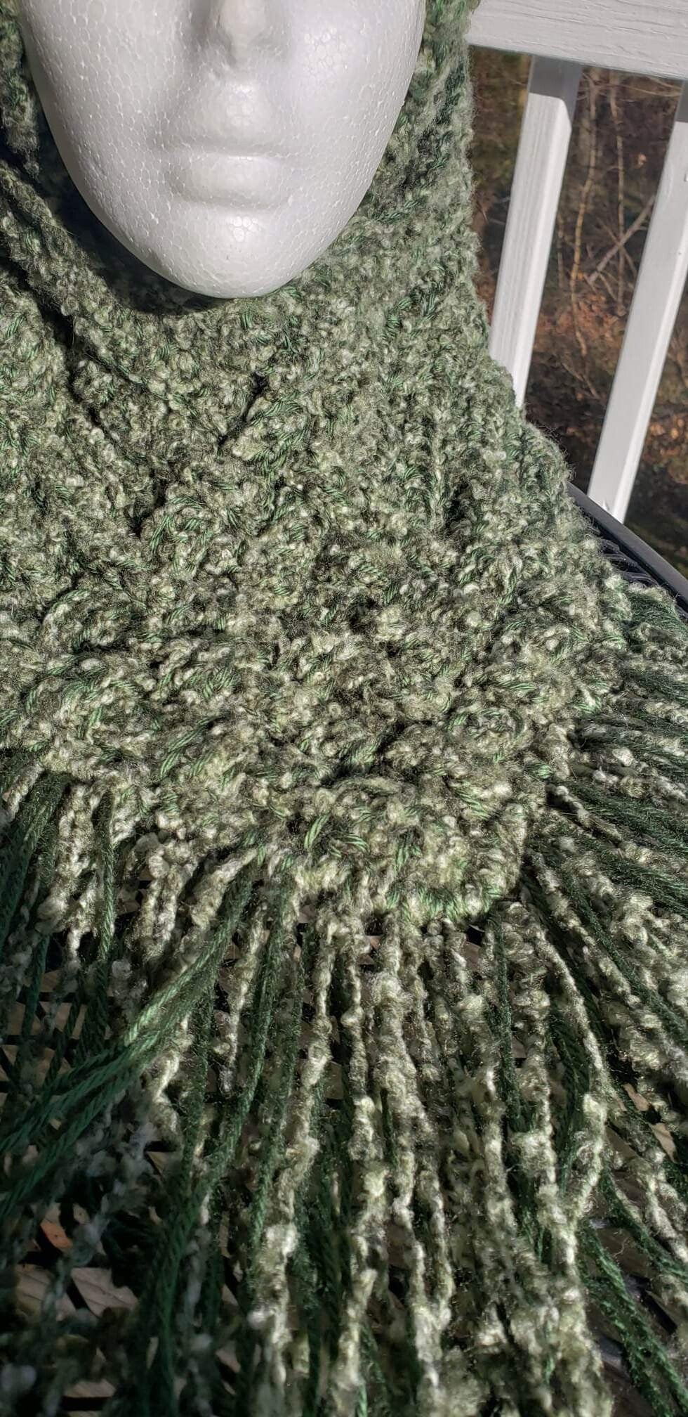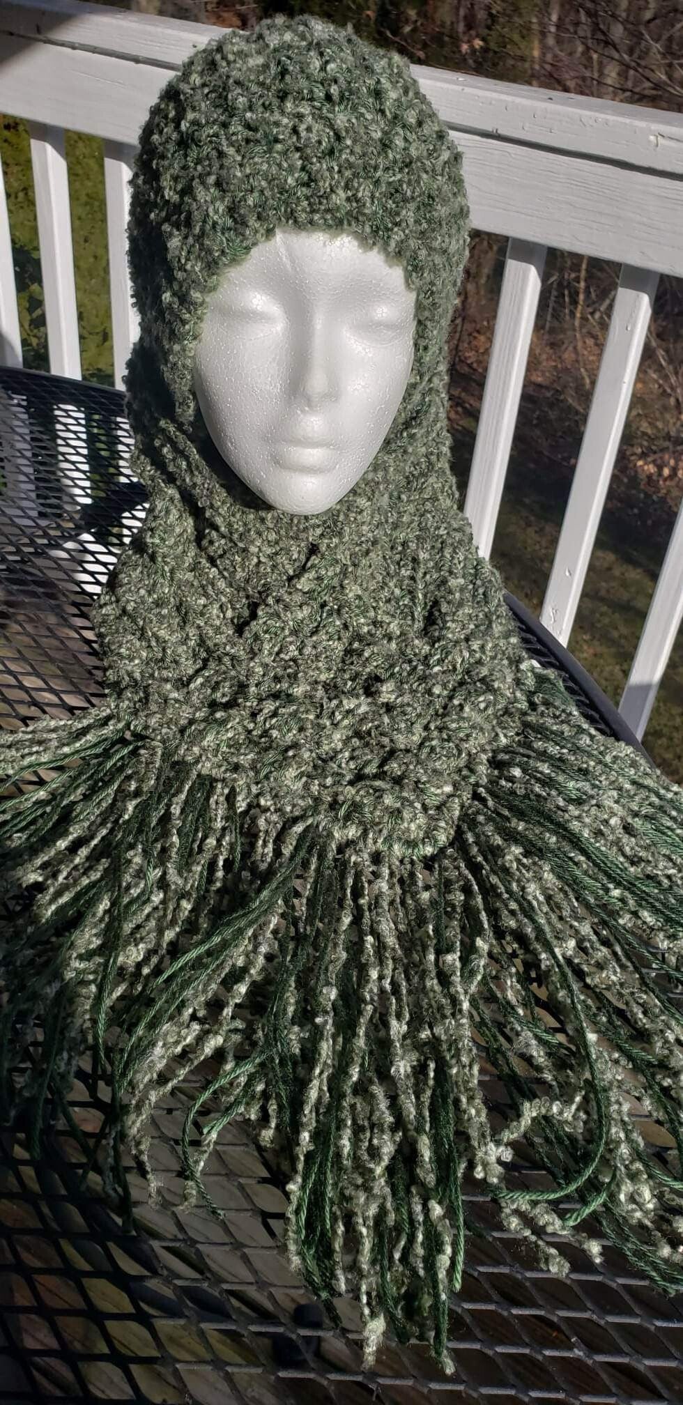Crocheted hat and fringed cowl set in very plush shades of Green set.