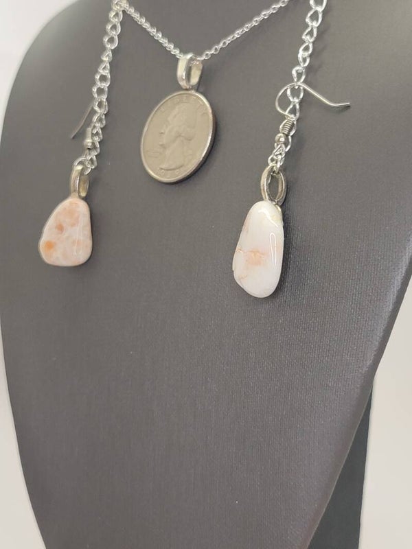 Earrings Citrine Quartz & Feldspar Agate Cabochon