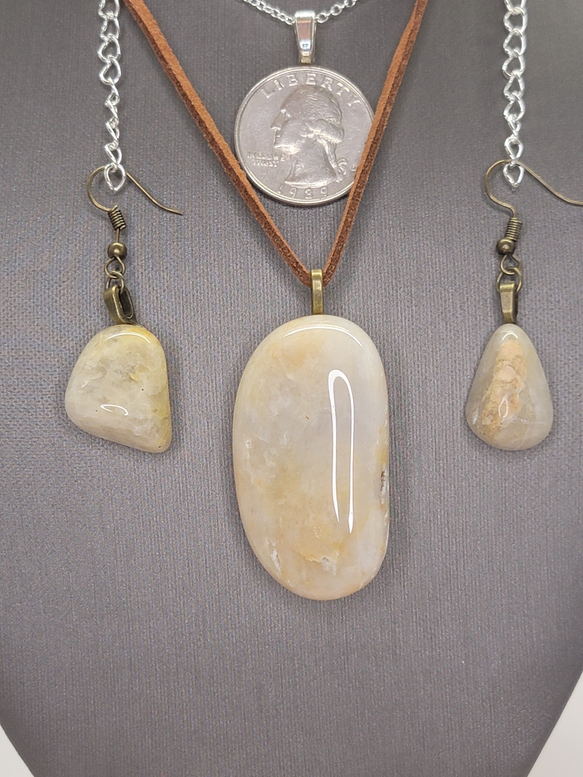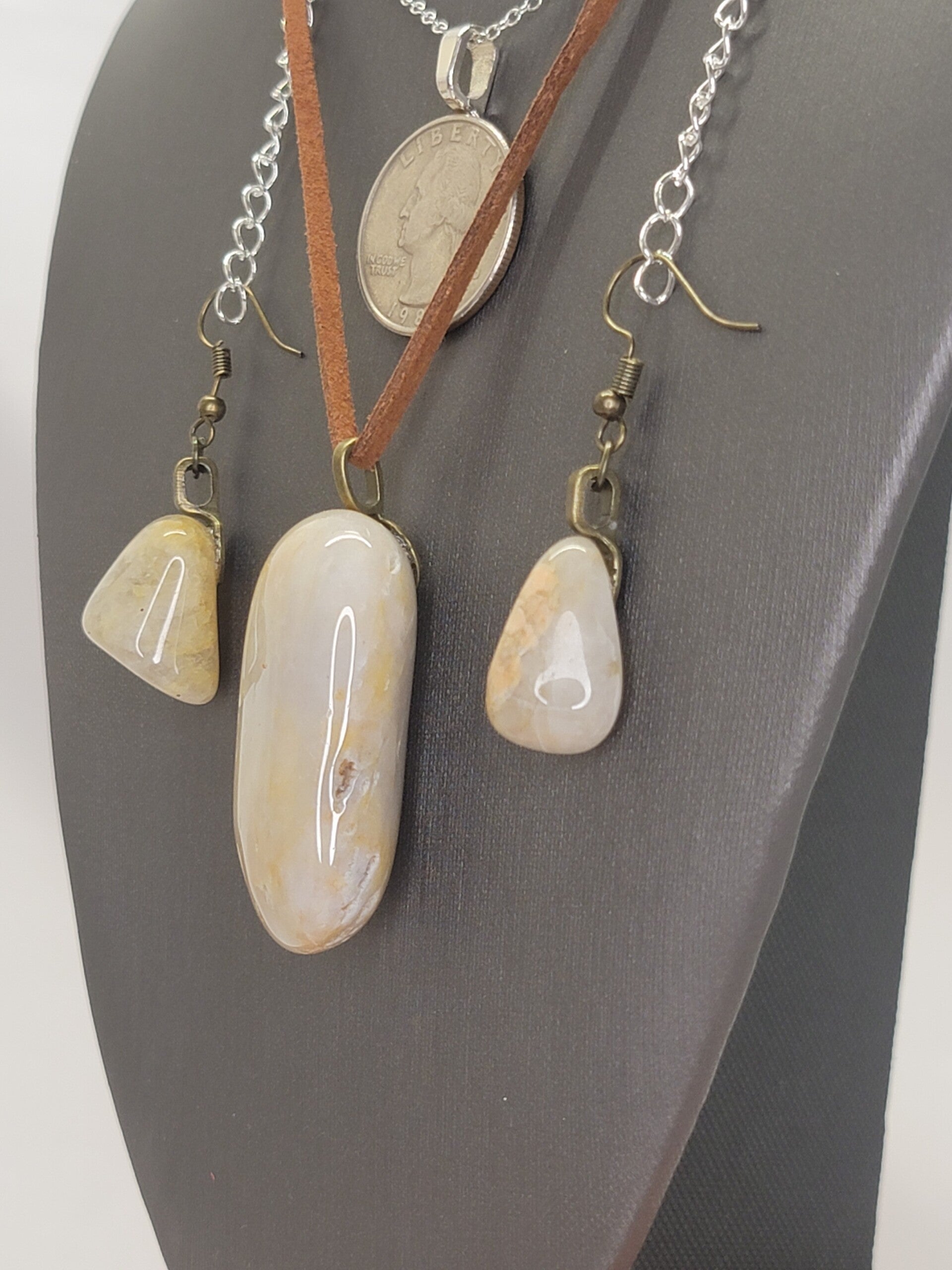 Pendant, Necklace & Earrings, Petrified wood