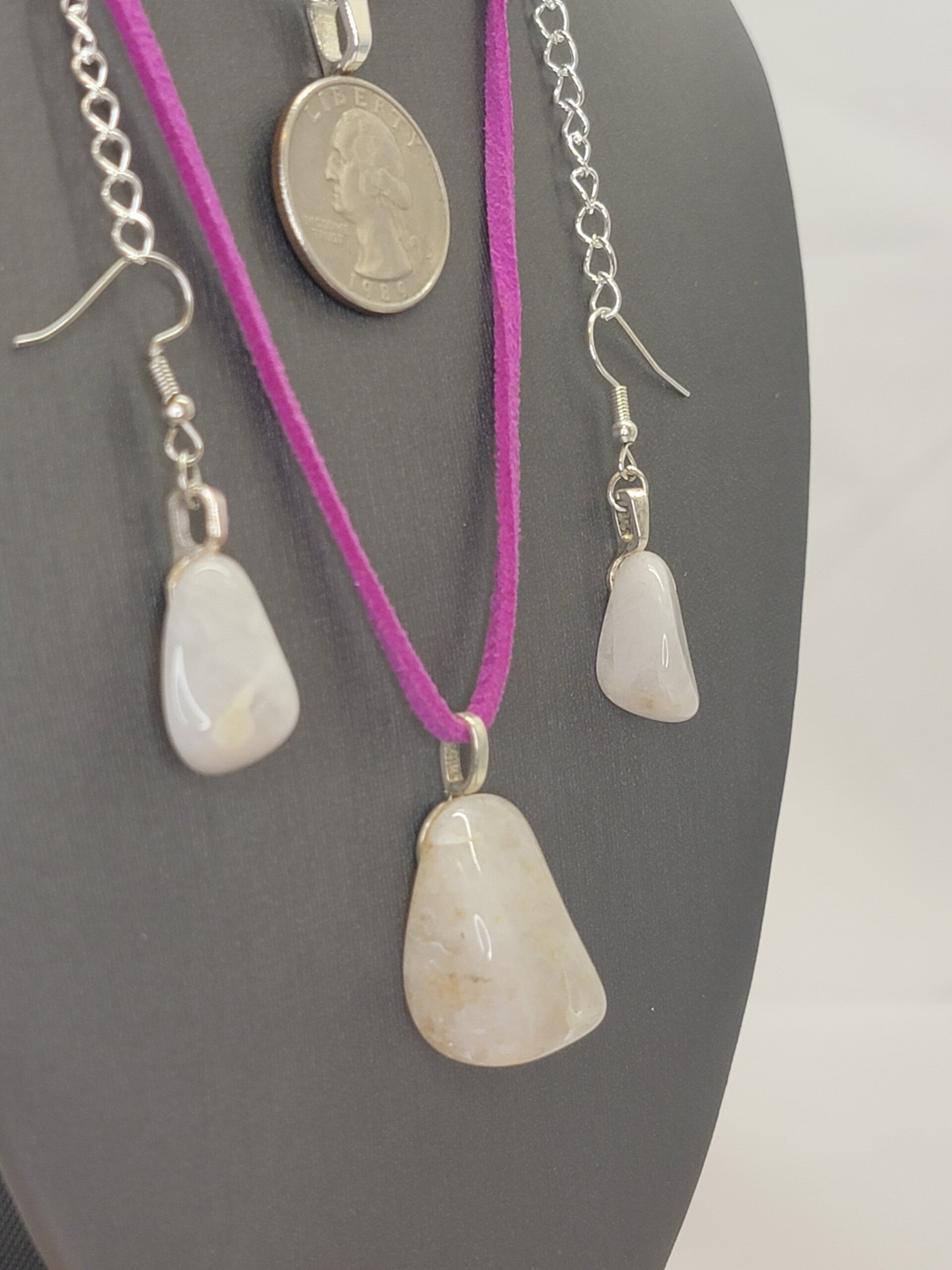 Pendant, Necklace & Earrings White Jasper