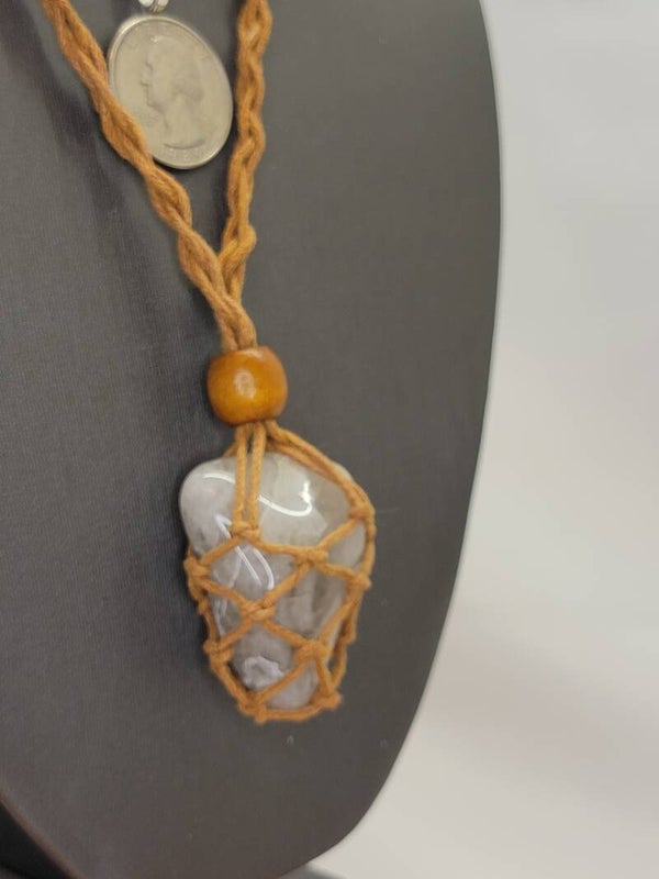 Pendant & Necklace Flint Smokey Quartz Agate, w/Basket Necklace
