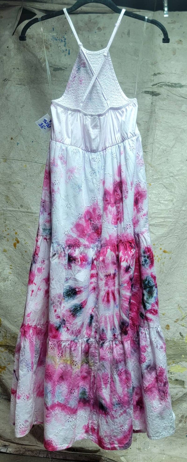 Halter top sundress. Tie dyed with a swirl in punks and grey