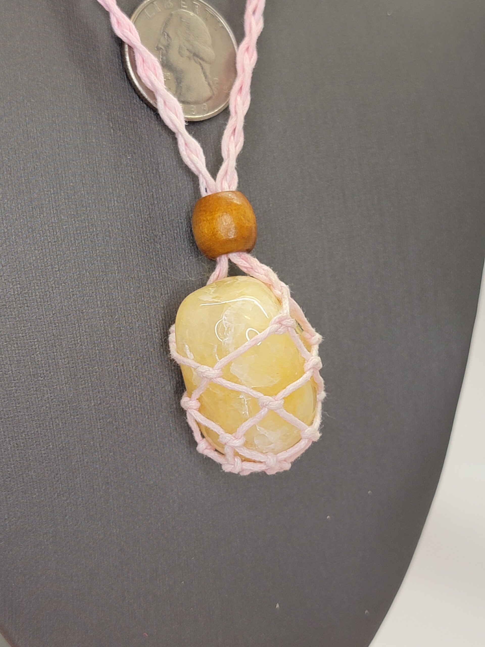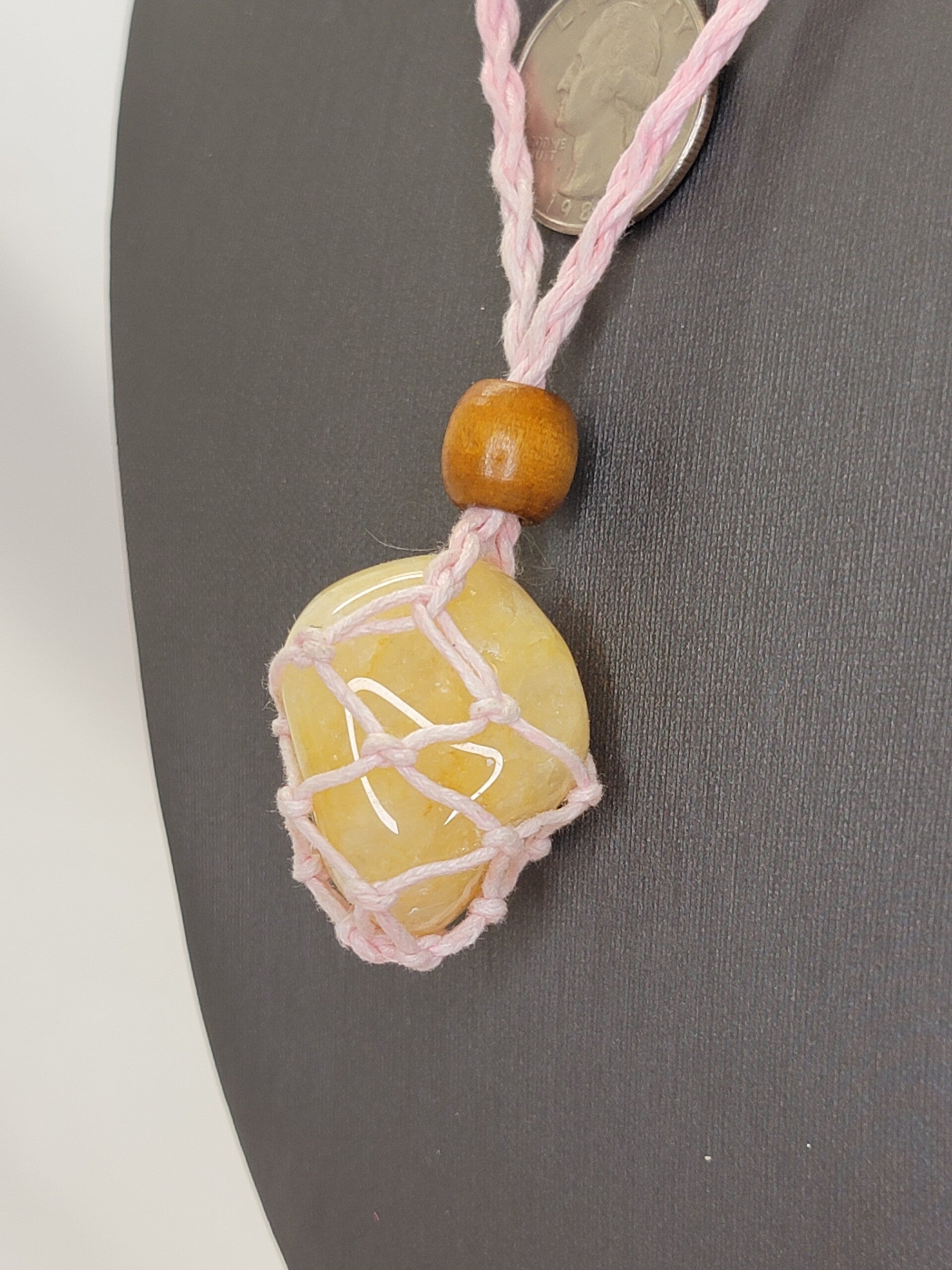 Pendant, & Necklace, Yellow Chalcedony Quartz Agate, w/Basket Necklace