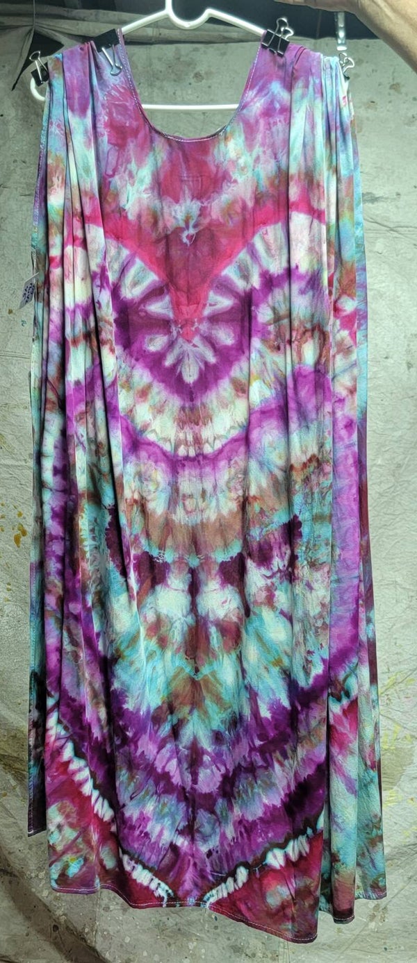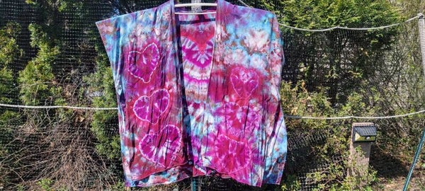 Womens XL rayon 3 panel cape with 3 hearts dyed on each of the front panels and a large heart on the back.