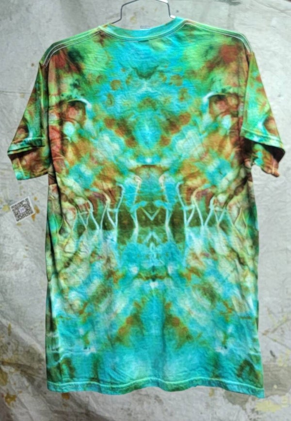 Cotton t-shirt dyed with shades of green turquoise and bronze