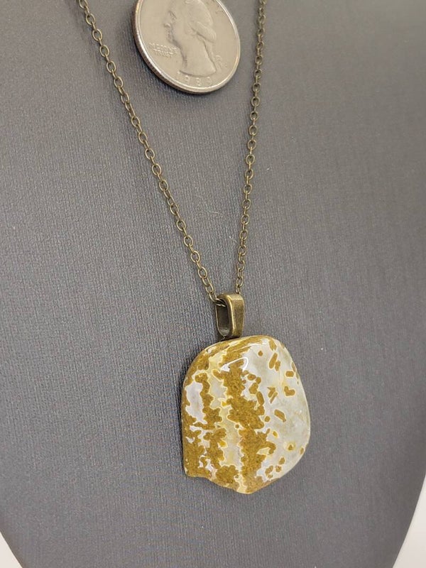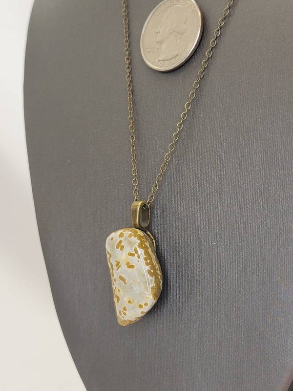 Pendant & Necklace, White Jasper W/gold flakes Agate