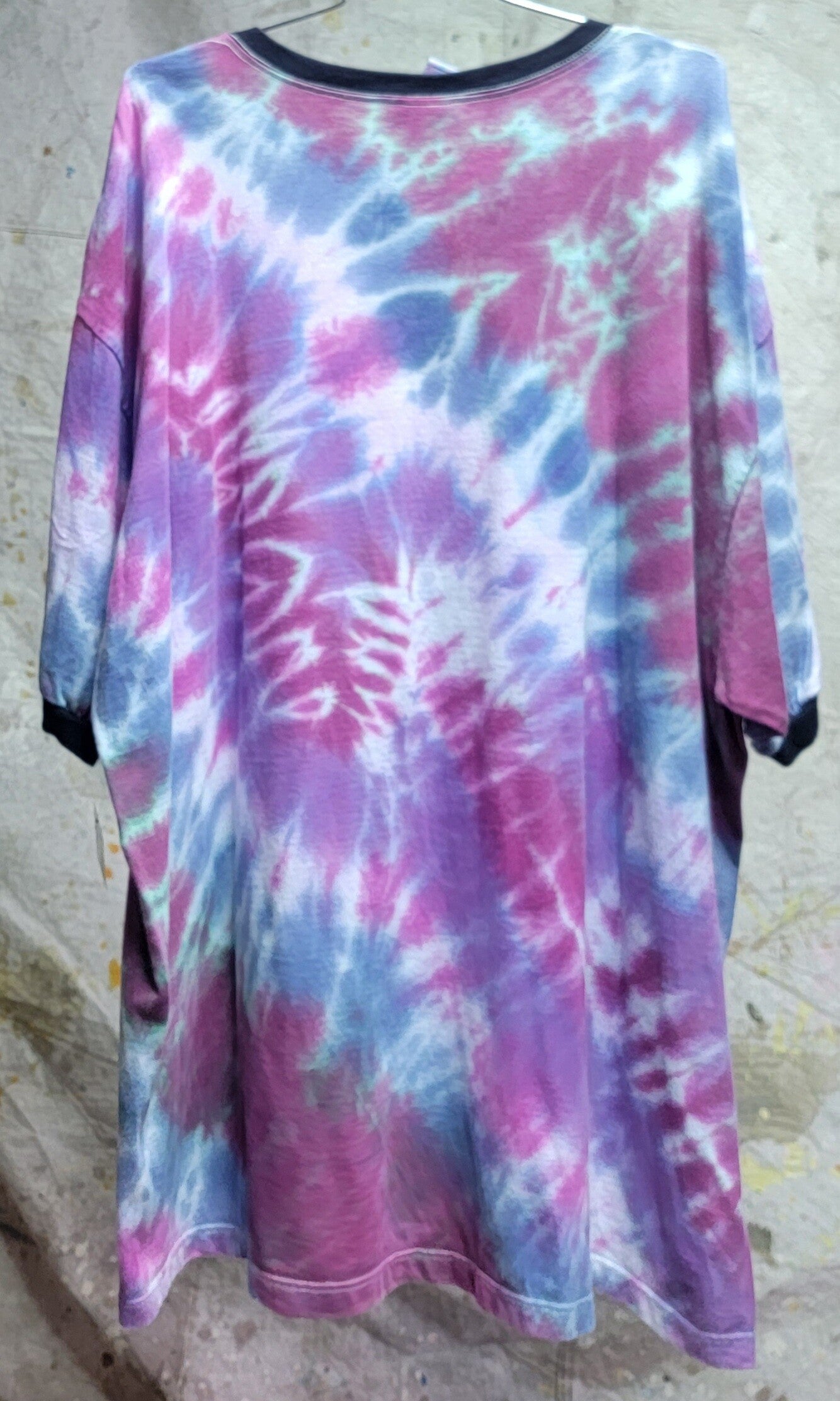 Calvin Klein cotton short sleeved Navy trimmed sleeves and neckline. Dyed in shades of Purple blue and Magenta