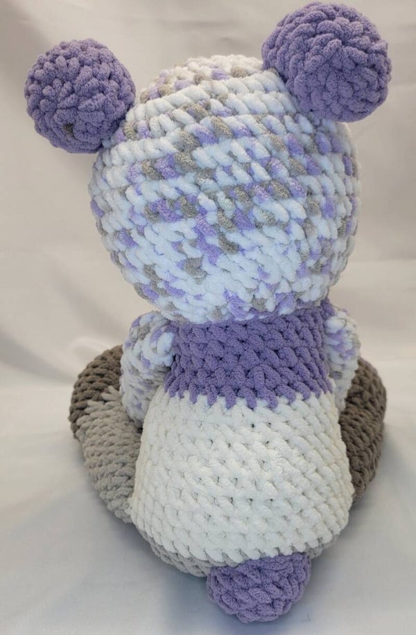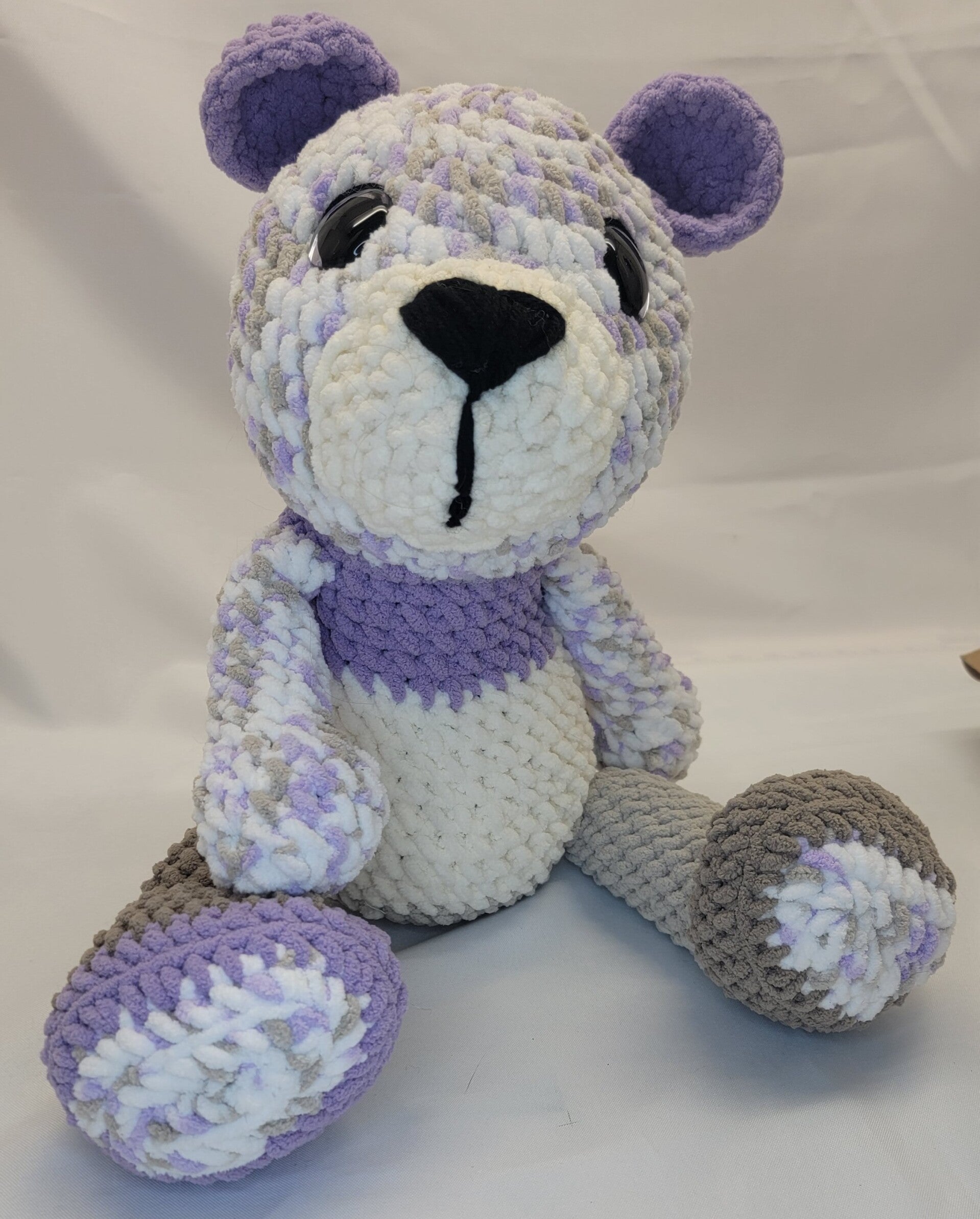 Large and Squishy 15" tall Teddy bear made with velvet yarn and HUGE Sparkly purple eyes.