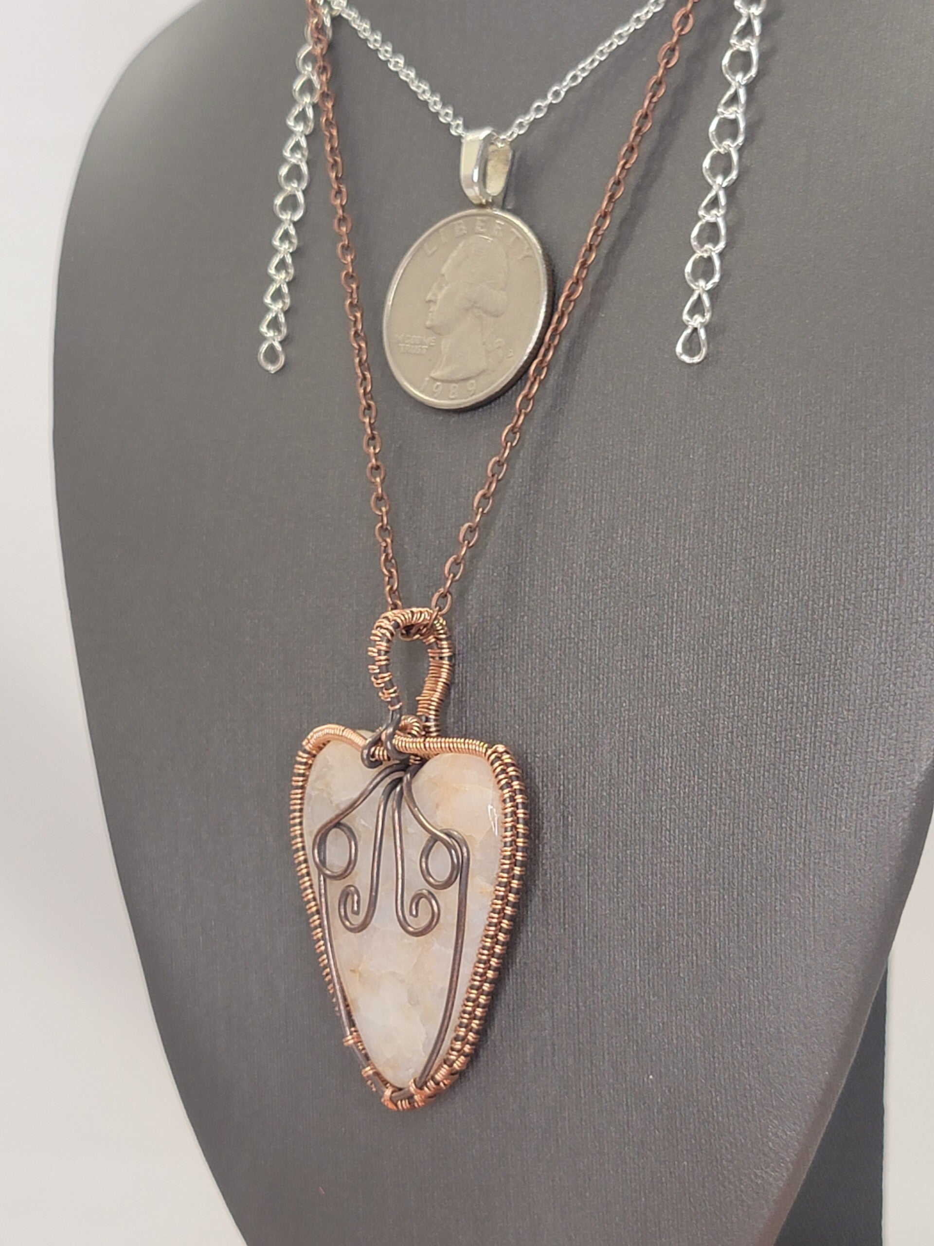 Pendant & Necklace Rhodonite Heart Wire Wrapped Cabochon, finished on two sides