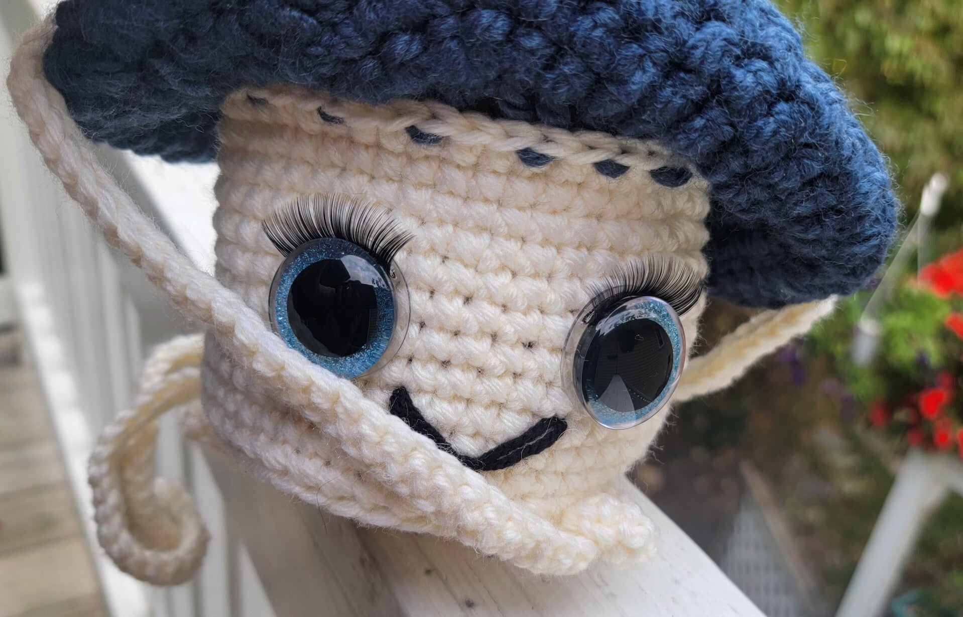 🍄🍄 Adorable LARGE Blue Mushroom bag. Strap is 50 inches long. Blue cap with sewn on white buttons. LARGE sparkly Blue safety eyes with EYELASHES! 5" round base