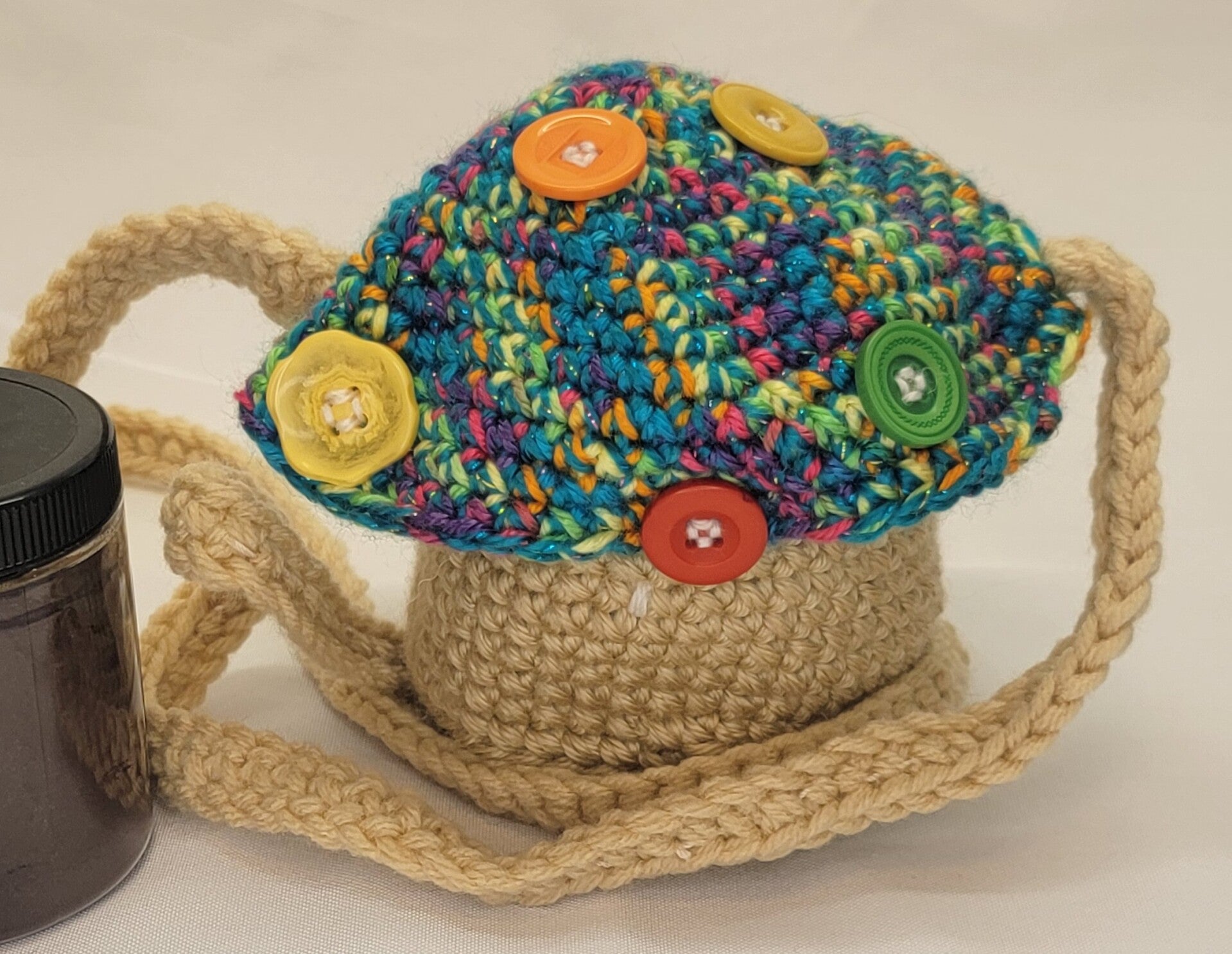 🍄🍄 Adorable Medium Brown stem and Rainbow colored cap Mushroom bag. Strap is 45 inches long. CAP with sewn on multi Colored buttons. LARGE sparkly purple eyes with. 3.5" round base. Bag is lined! CAP is partially sewn on and a button to secure the cap.