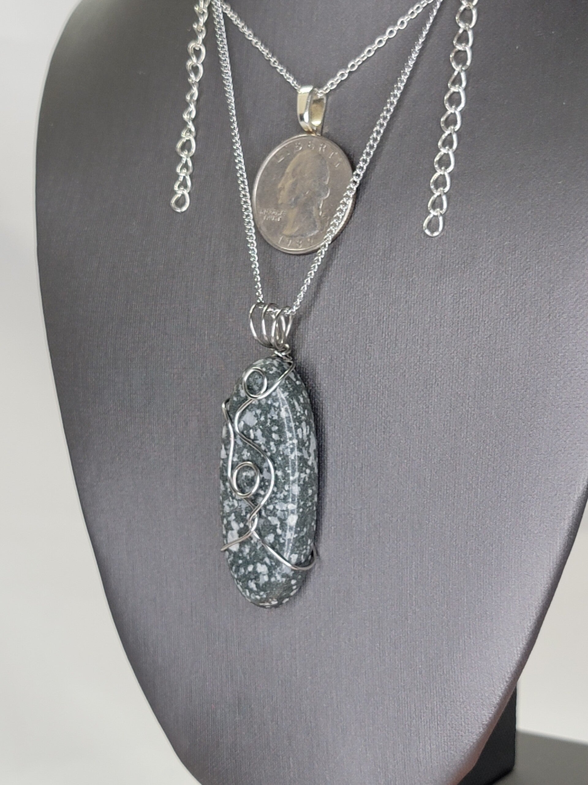 Pendant & Necklace Cumberlandite Crystal, Cabochon, Wire Wrapped