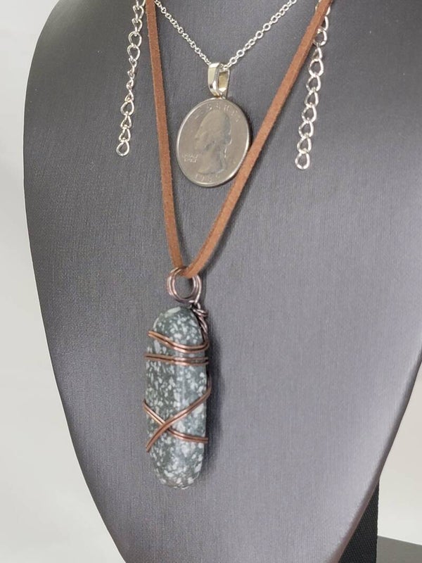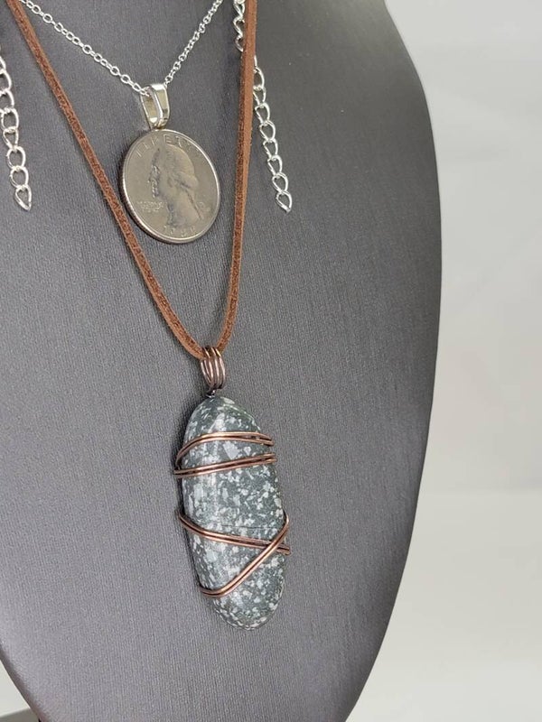 Pendant & Necklace Cumberlandite Crystal, Cabochon, Wire Wrapped