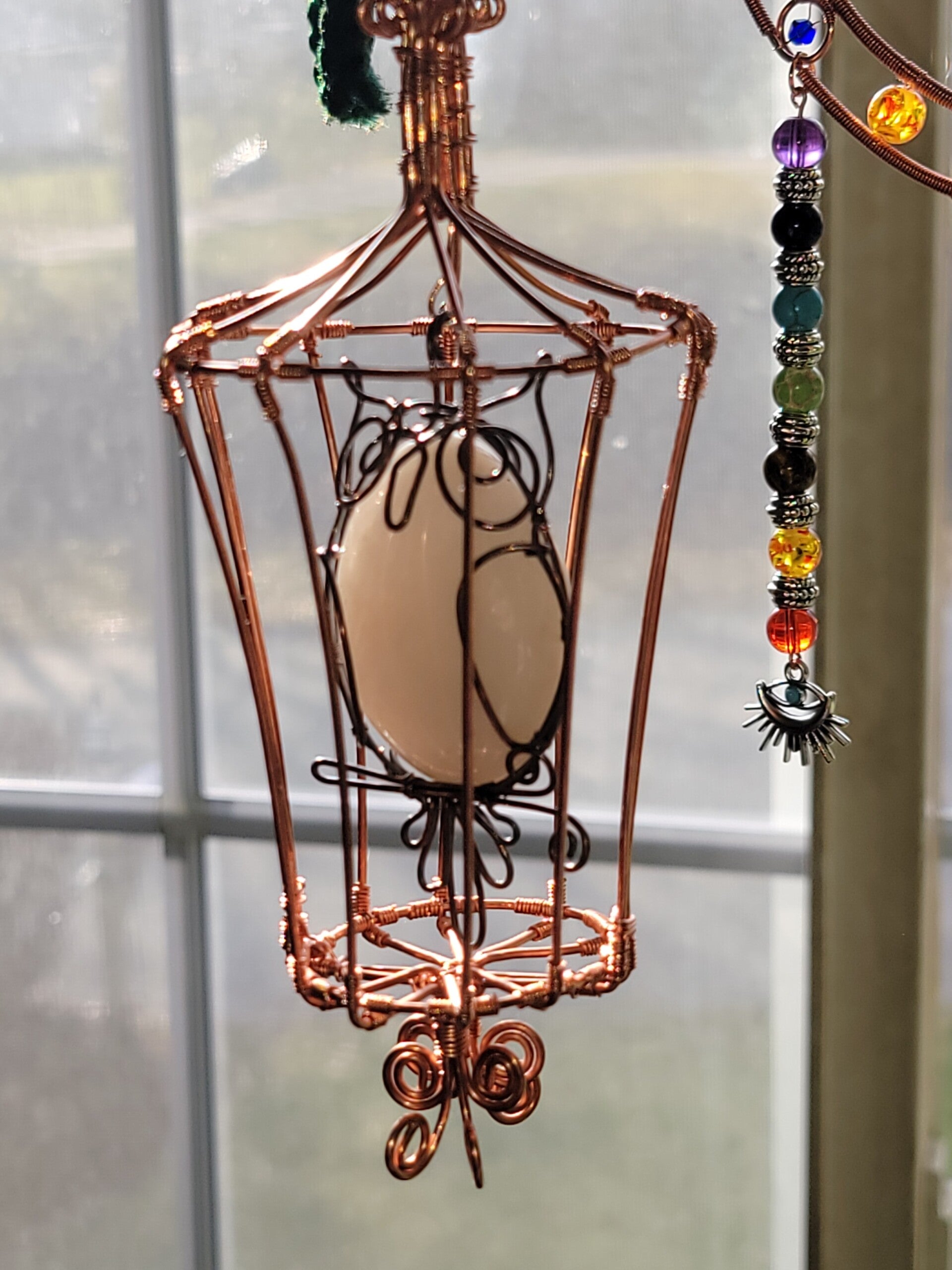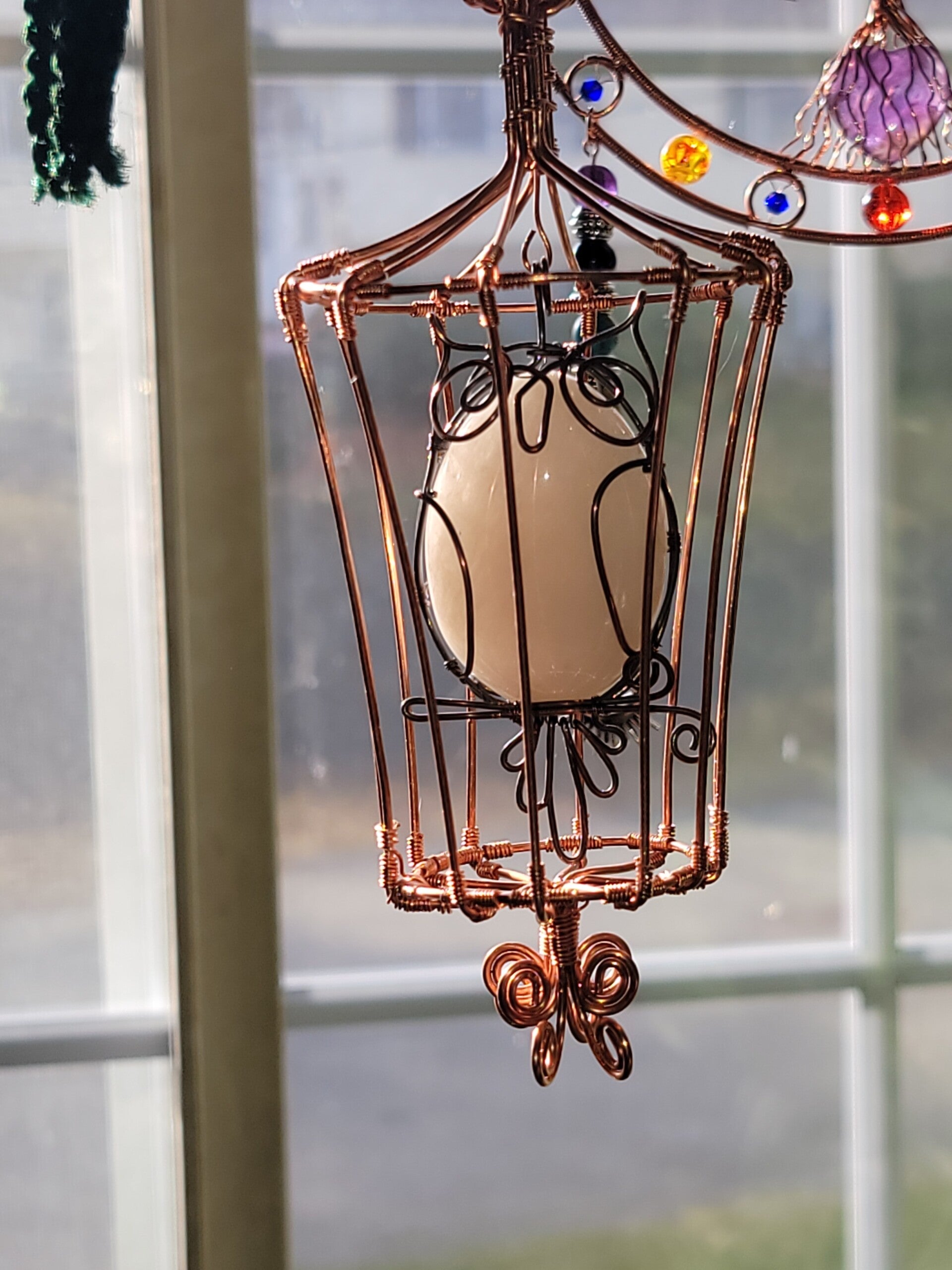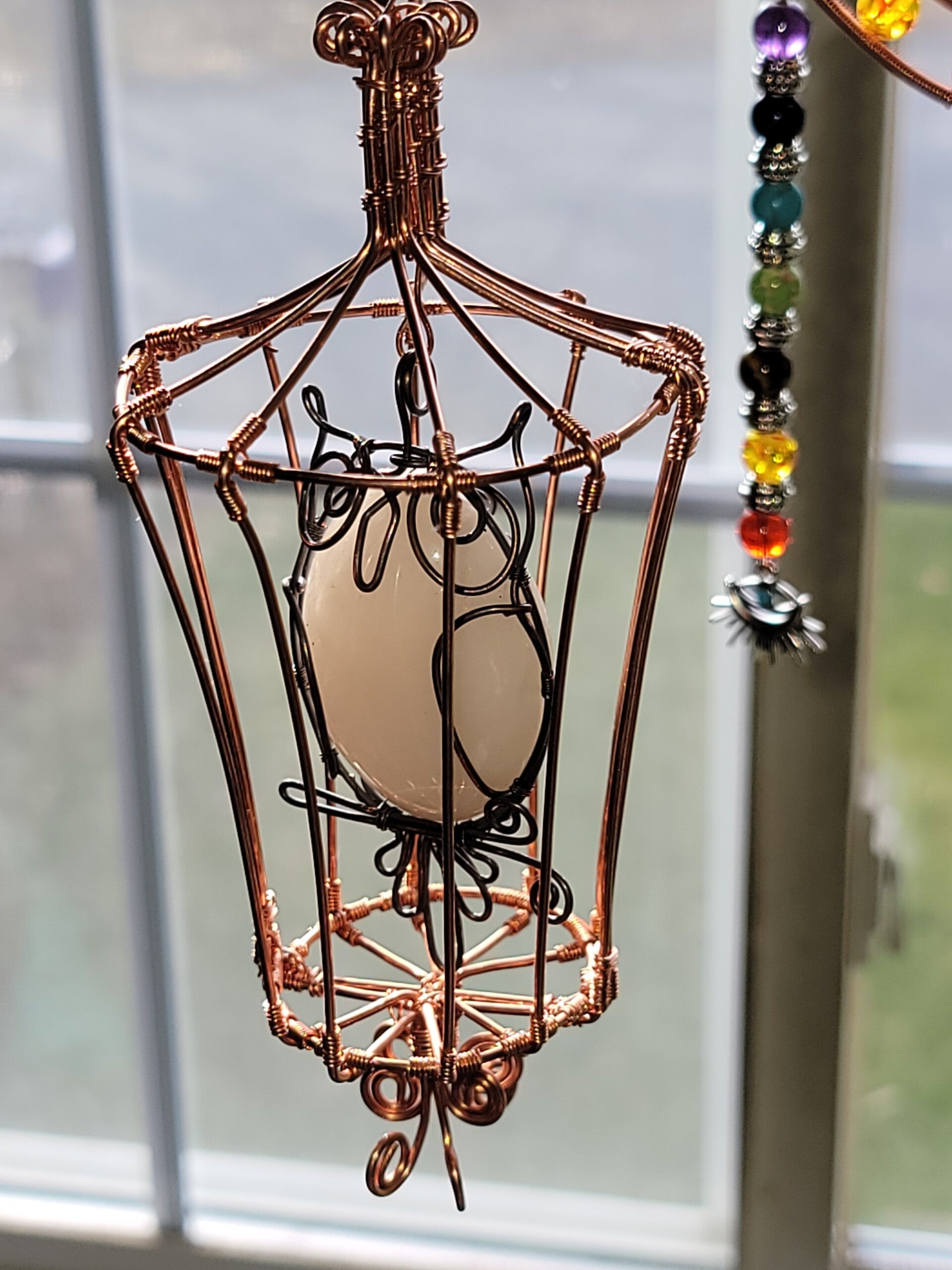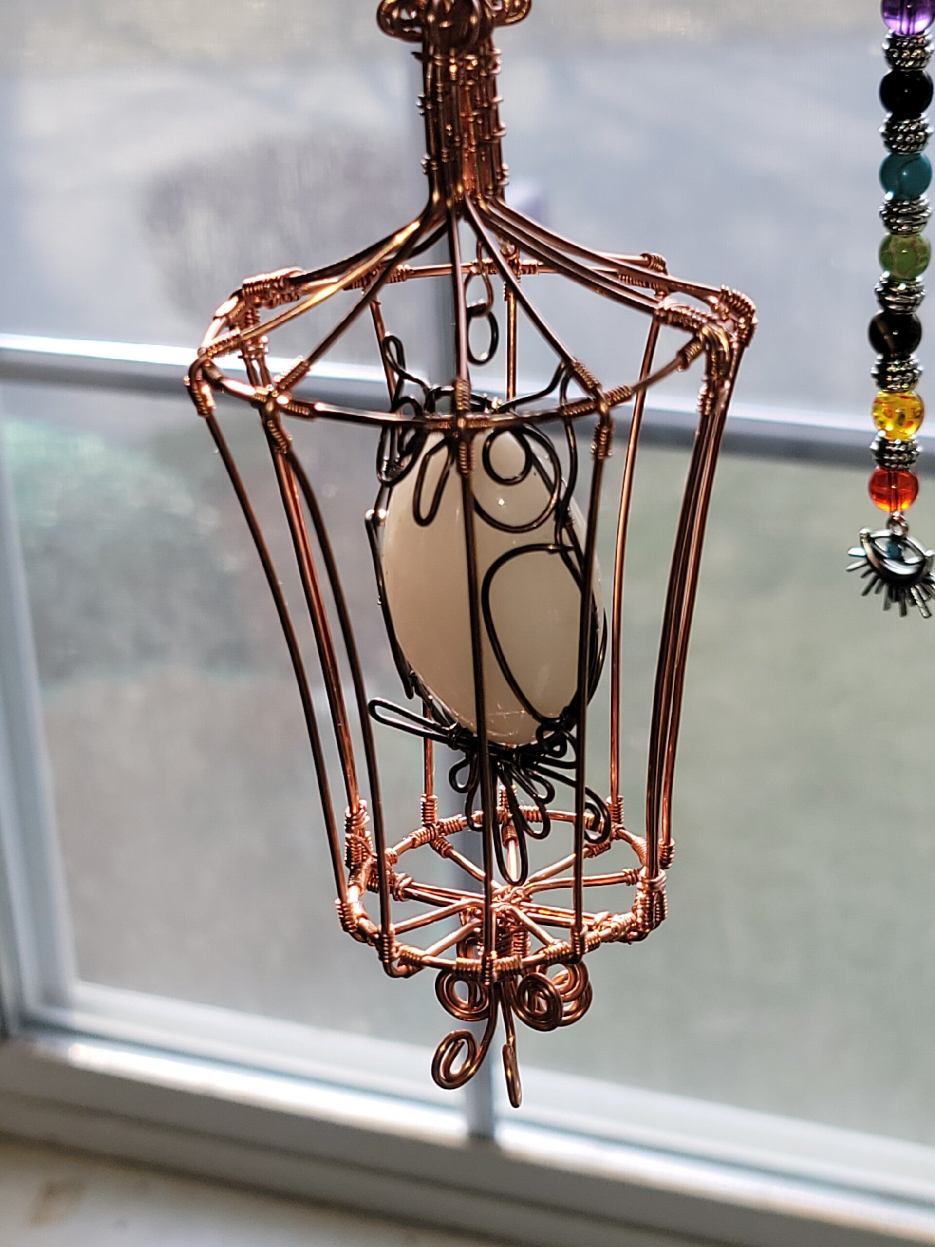 6"x3" Brid Cage, w/Snowy Owl, Milky Quartz local RI stone