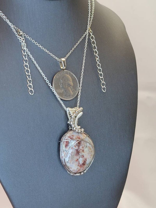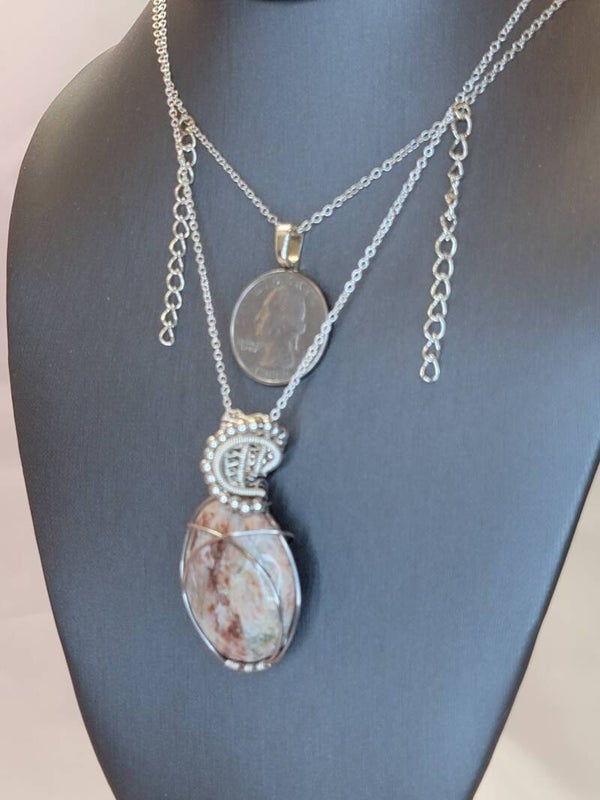 Pendant & Necklace, Batik Jasper, Wire Wrapped