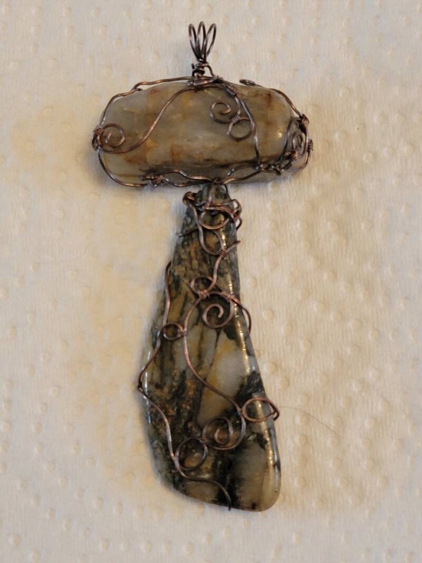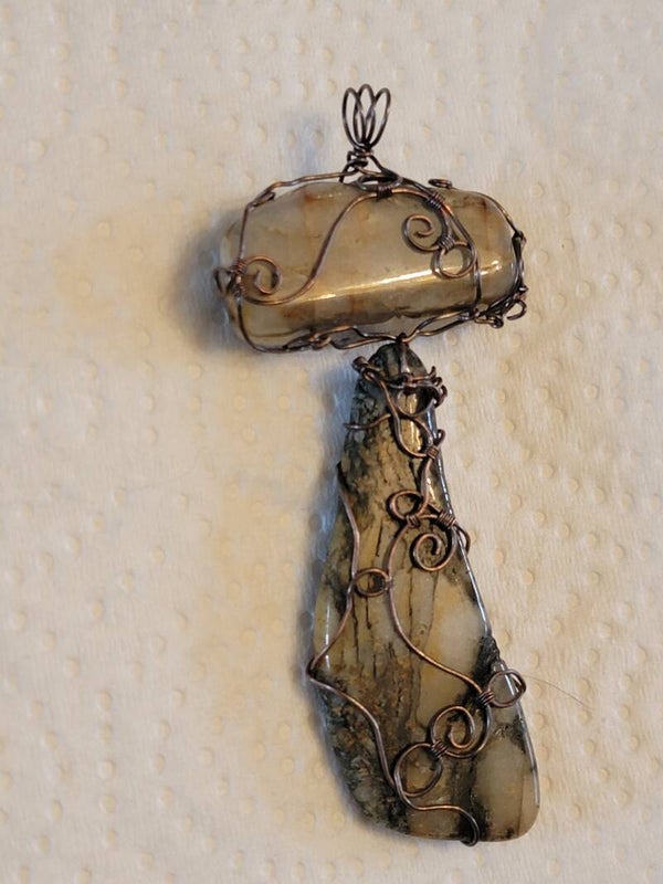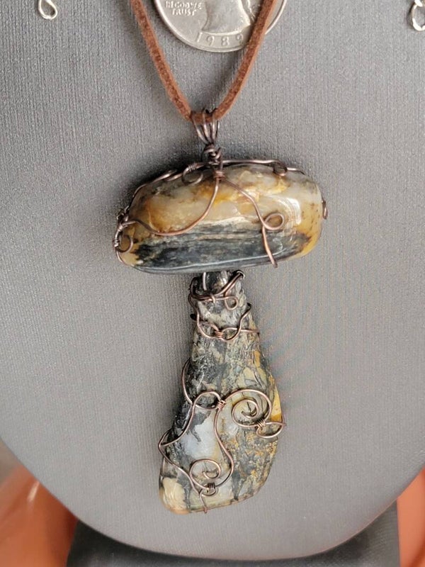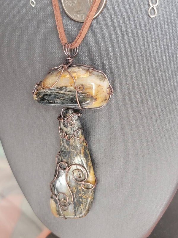 Pendant & Necklace Mushroom Picasso Jasper Cabochon, Wire Wrapped