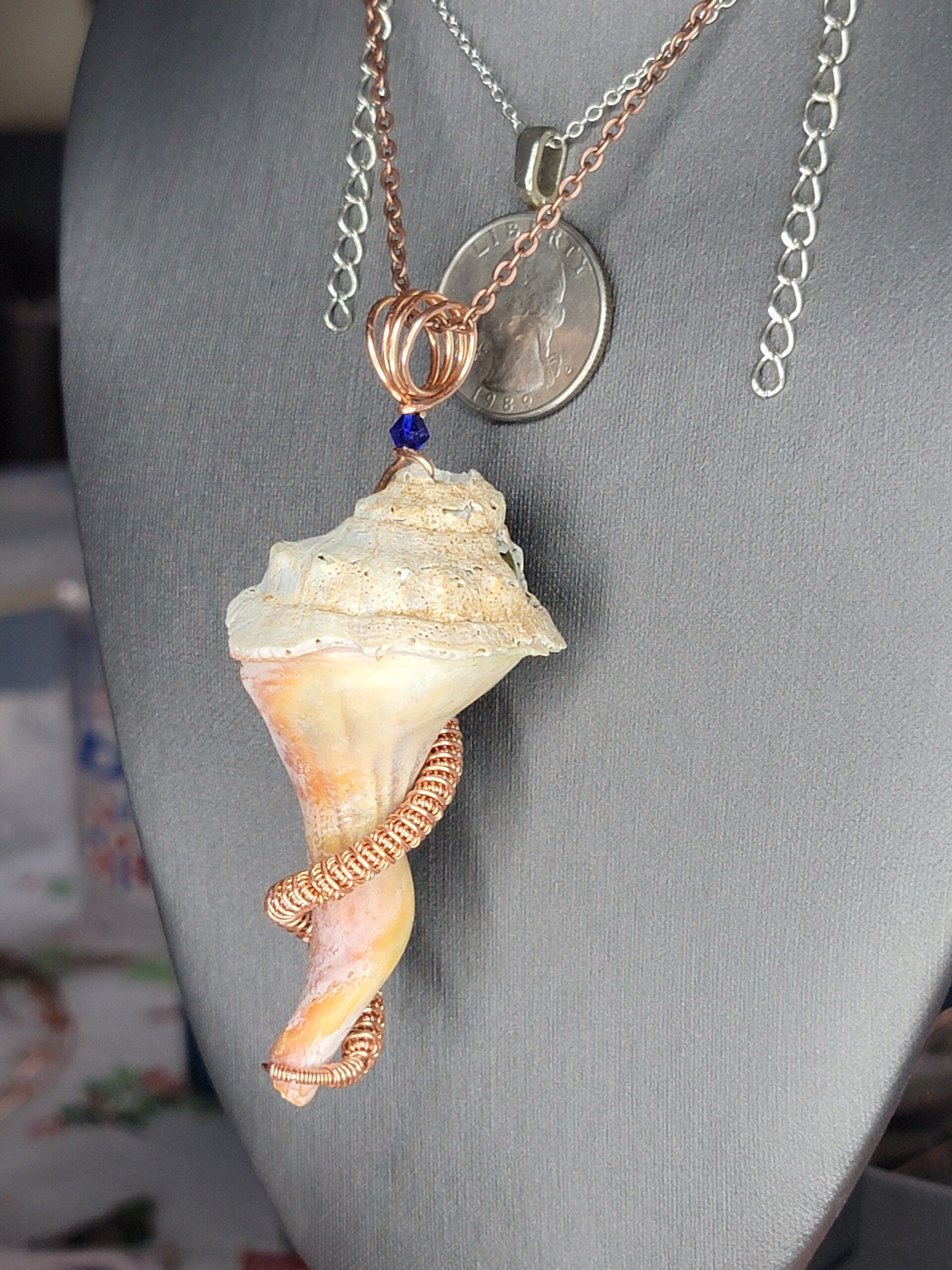 Pendant & Necklace Sea shell and Snake, Wire Wrapped