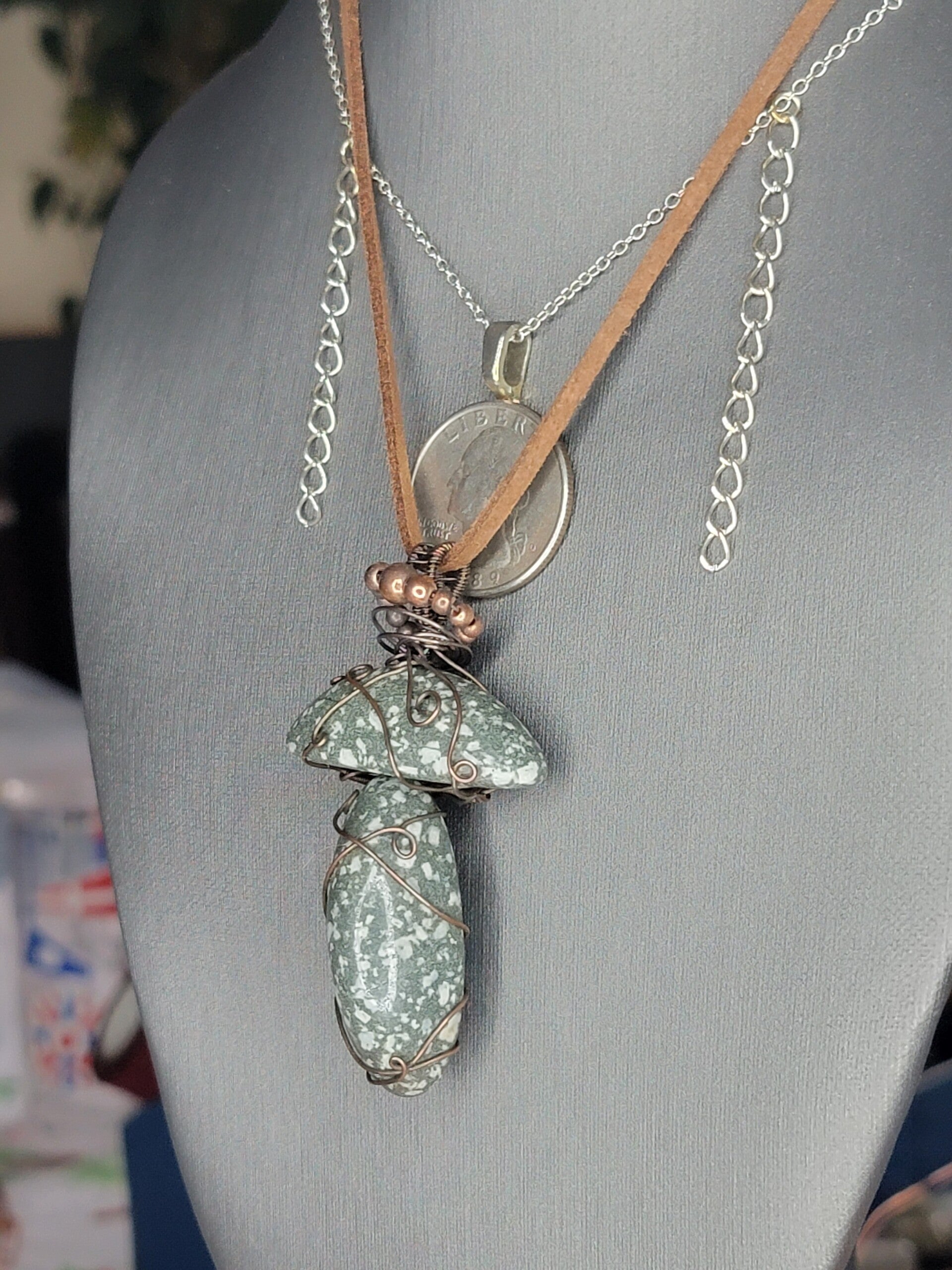 Pendant & Necklace Mushroom Cumberlandite Cabochon, Wire Wrapped