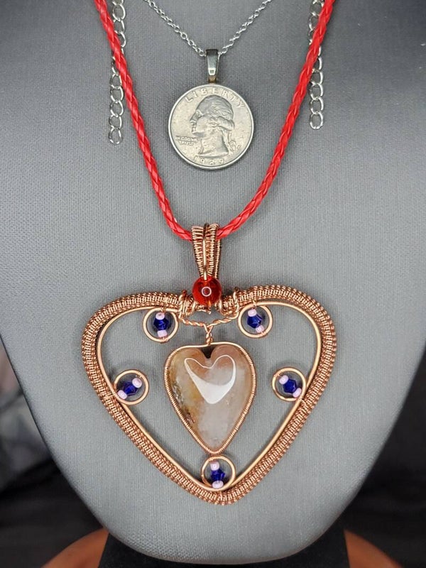 Pendant & Necklace, Sunstone Cabochon Heart, Wire Wrapped