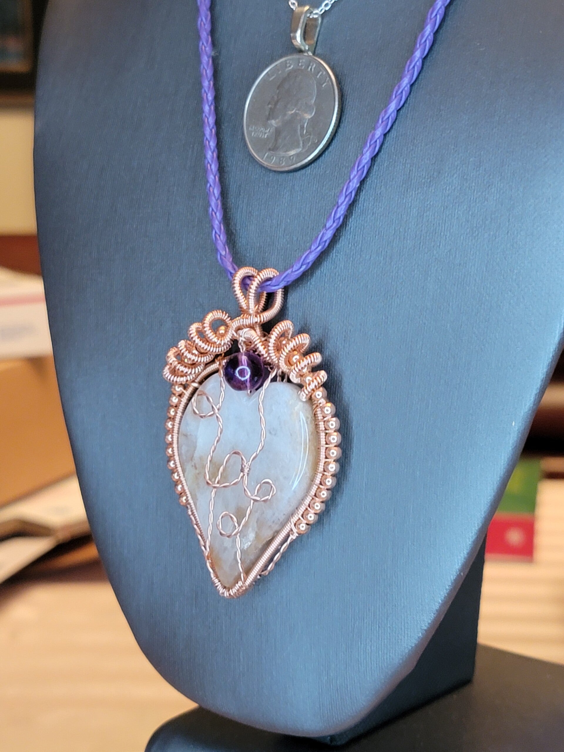 Pendant & Necklace, Sunstone Cabochon Heart, Wire Wrapped