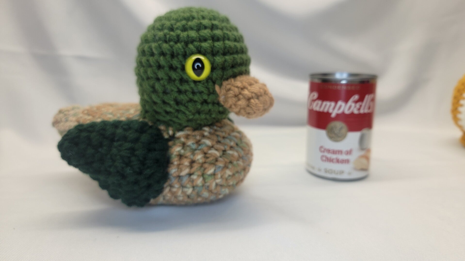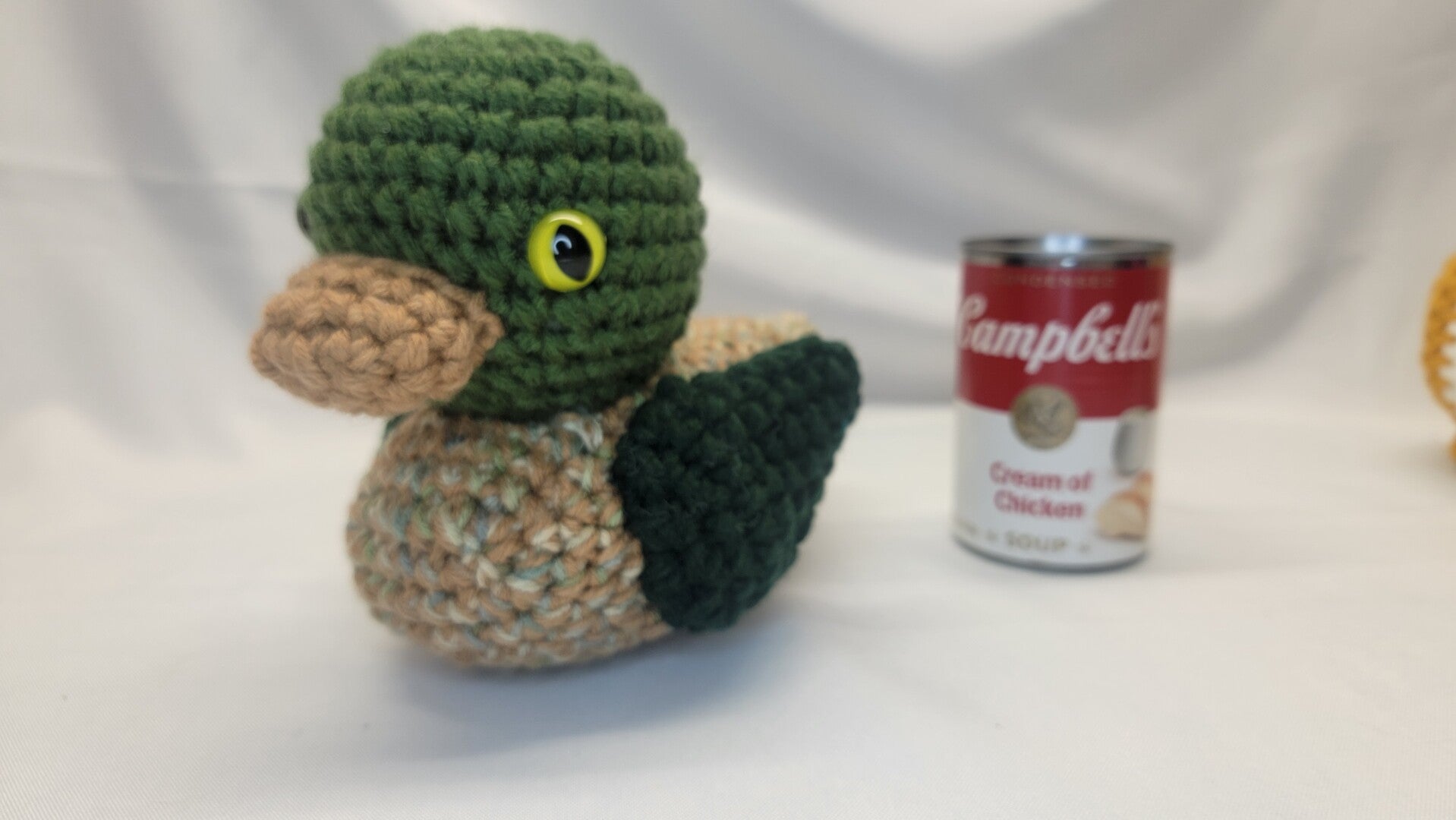Large "Mallard" Duck. 8" tall and 9" long. Yellow Dragon safety eyes