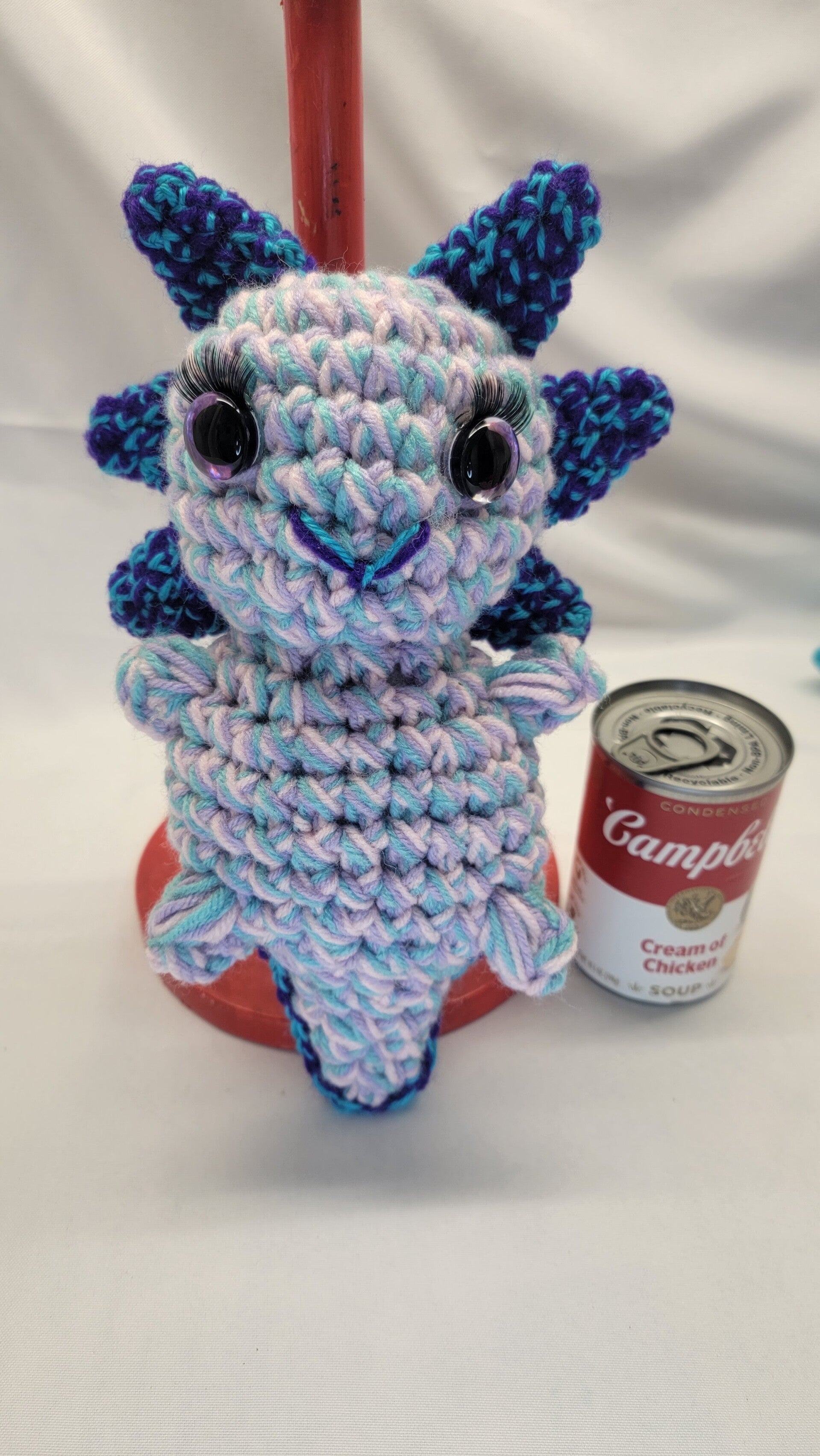 Large 13" tall pastel colored Axoloti with purple sparkly safety eyes with EYELASHES!! She will hypnotize you with her eyes!!