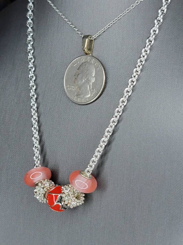 Handmade Necklace, 16" long, with beads w/zircon facets and Rose Quartz Beads
