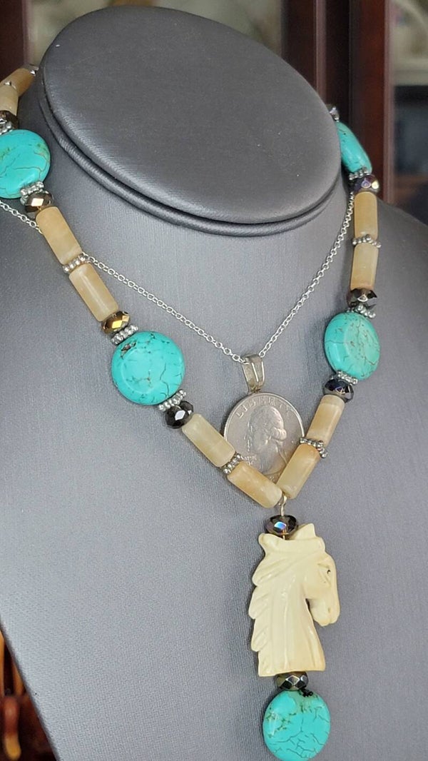 Handmade Necklace, 18" long, with Charms and Beads (Turquoise are not real)