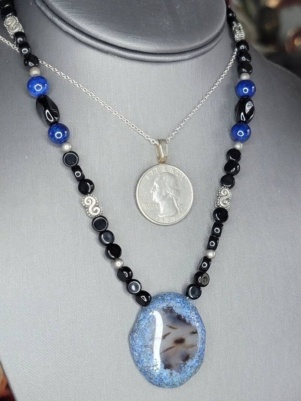 Handmade Necklace, 16" long, with an Agate Pendant Stone and Beads