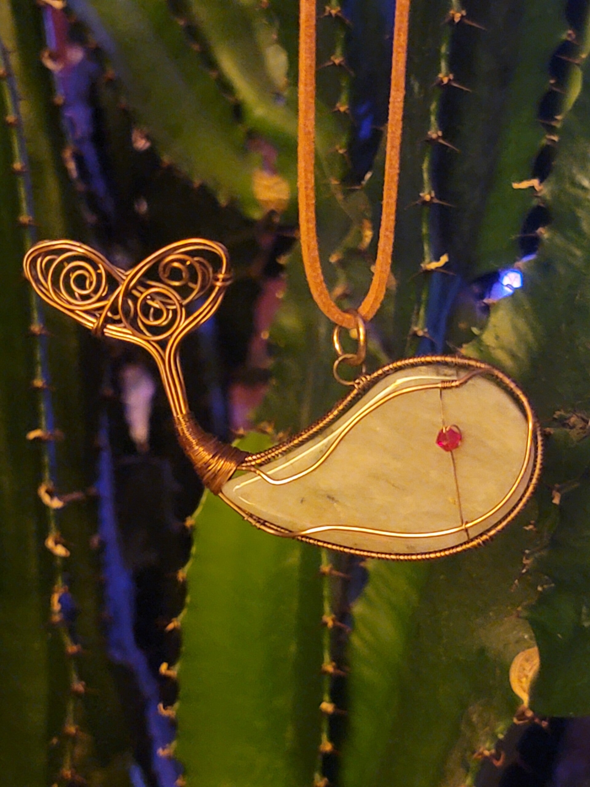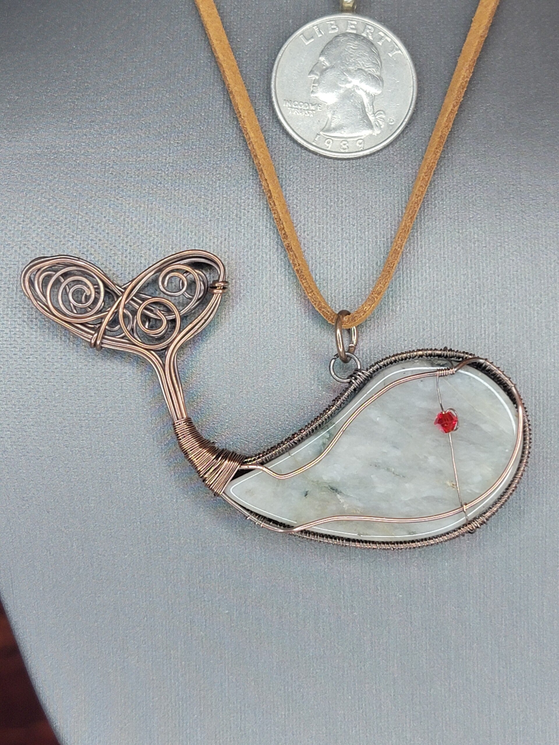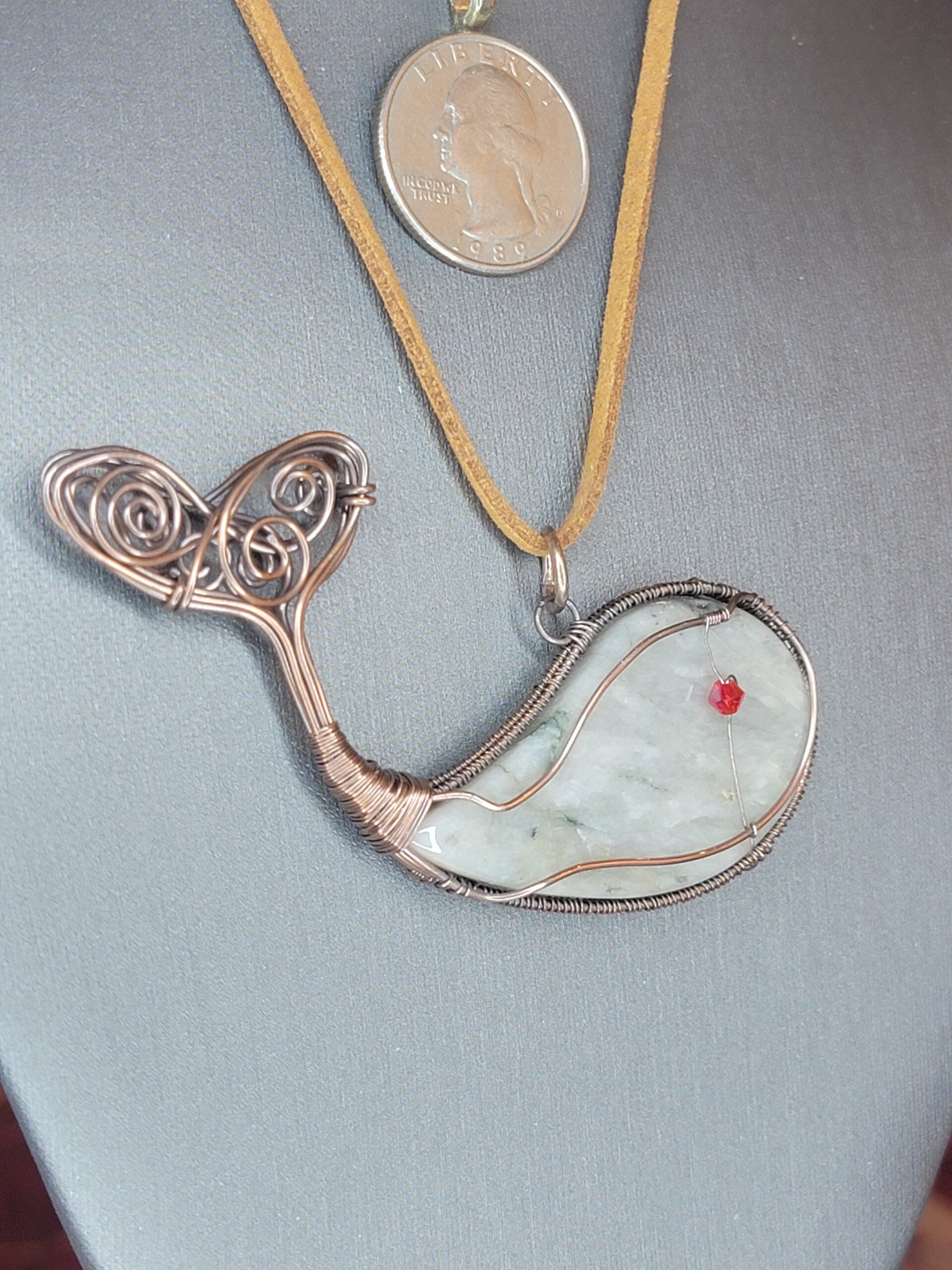 Pendant & Necklace, Whale Cabochon, Viking Compass Stone (Iolite), wrapped in copper.