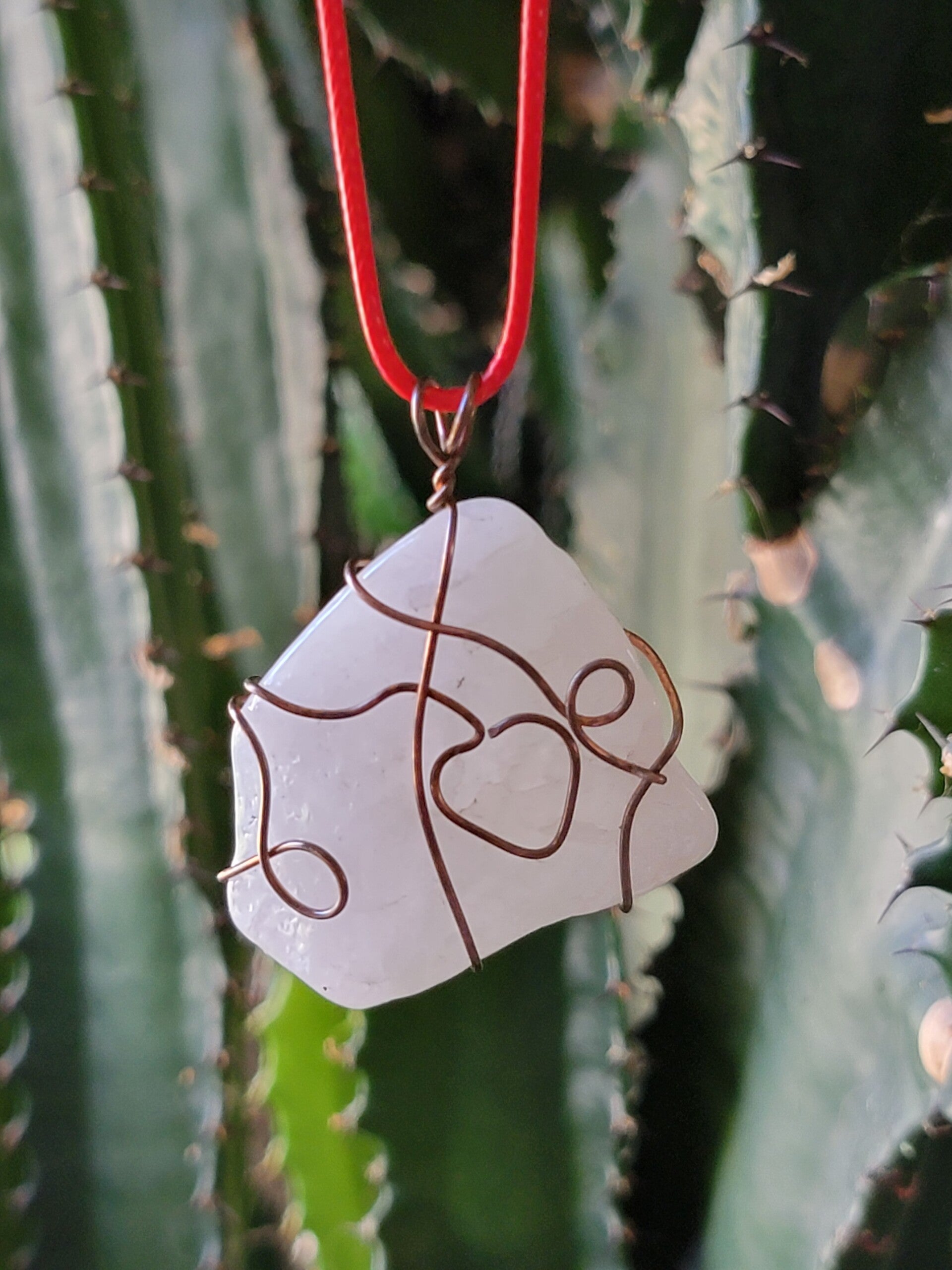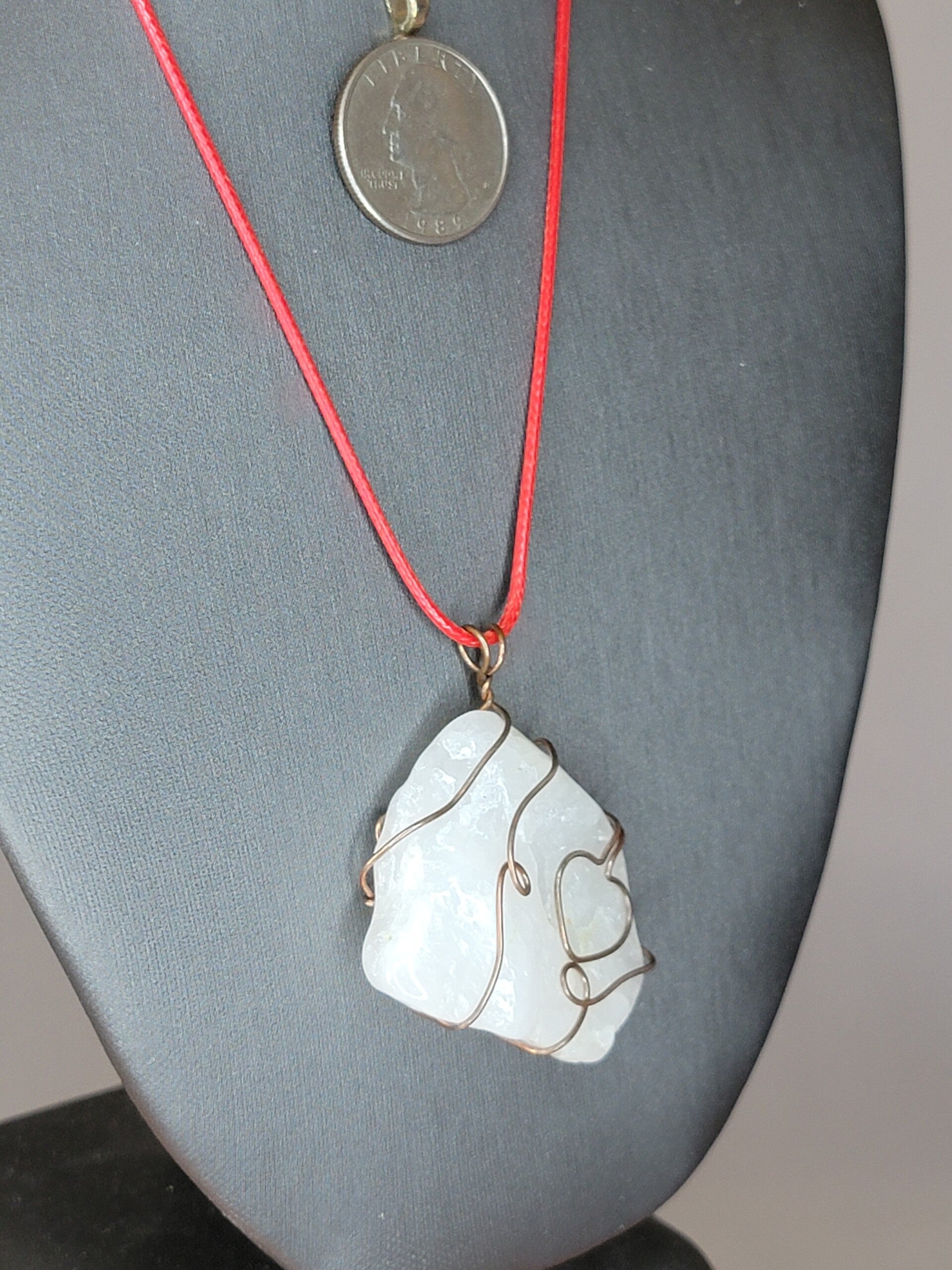 Pendant & Necklace White Agate Cabochon wrapped in copper. Two sided, with a heart on both sides!
