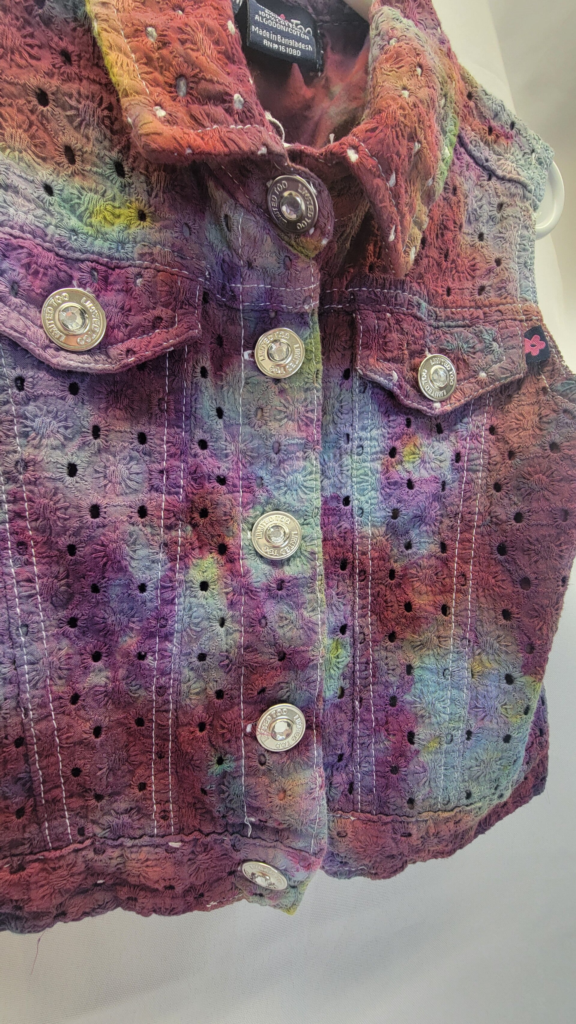 Limited Too eyelet sleeveless lined jacket. 100% cotton dyed in Mindbender
