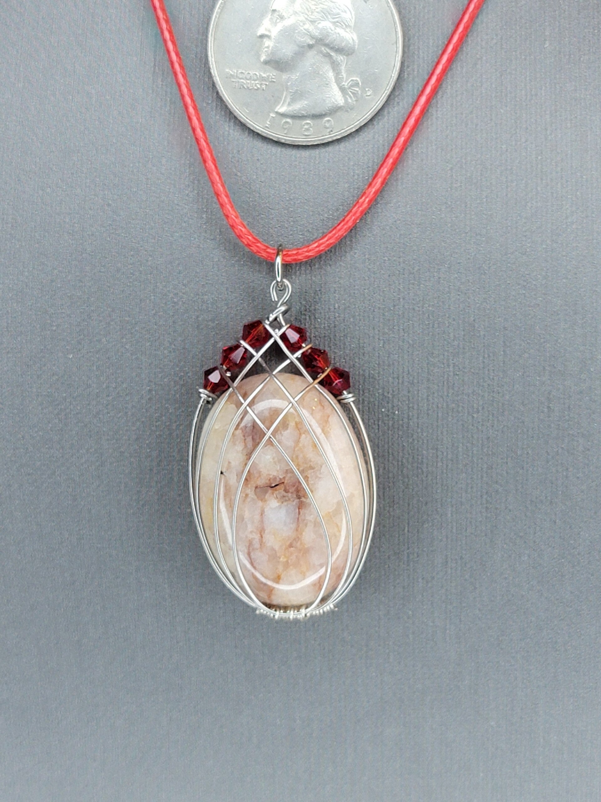 Pendant & Necklace, Lotus Blossom pendant, w/ Moonstone Cabochon, wrapped in Stainless.