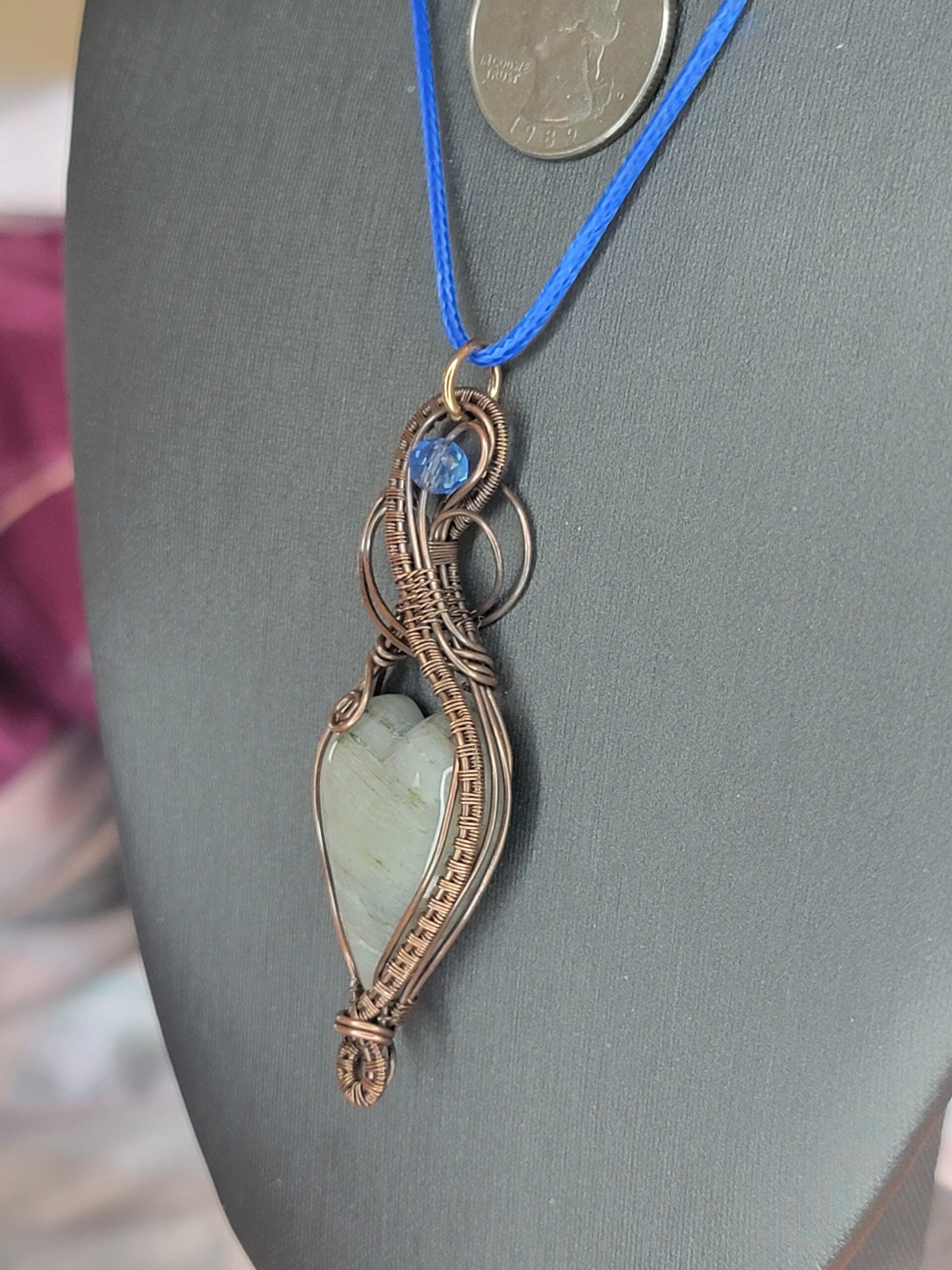 Pendant & Necklace, Heart Cabochon, Viking Compass Stone (Iolite), wrapped in copper.