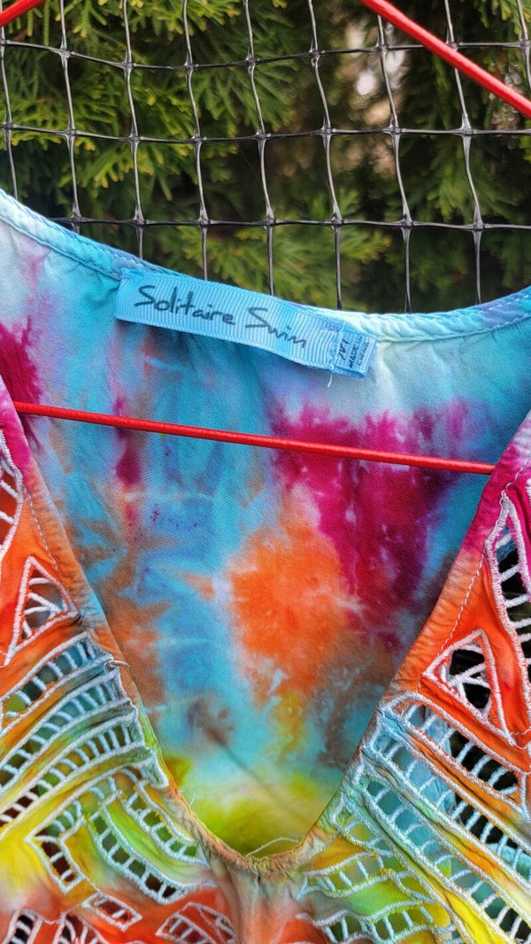 Solitaire Swim cover-up. Beautiful lace cut front dyed in bright colors