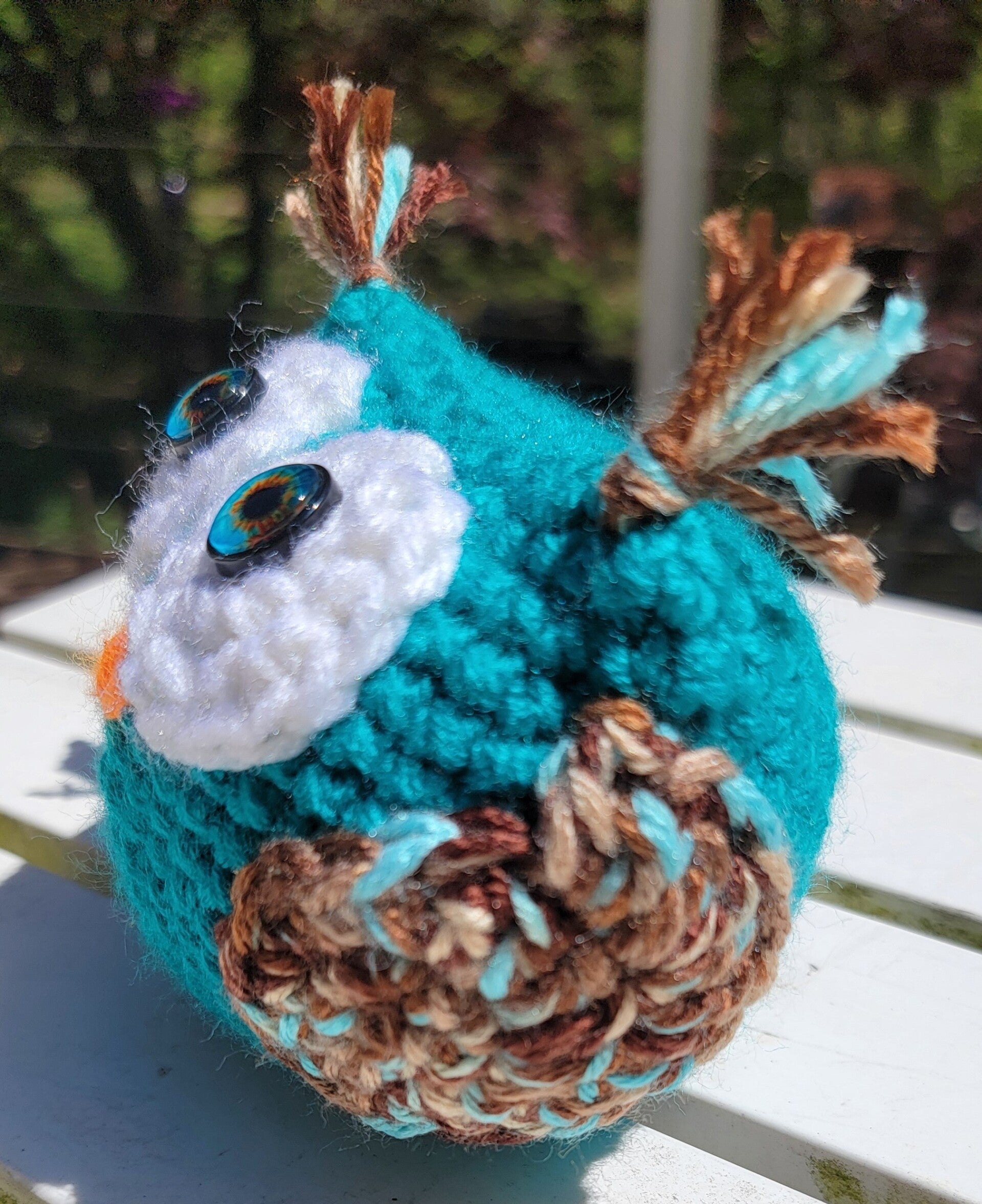 Bright teal green owl with amazing eyes! 4" tall and 6" wide