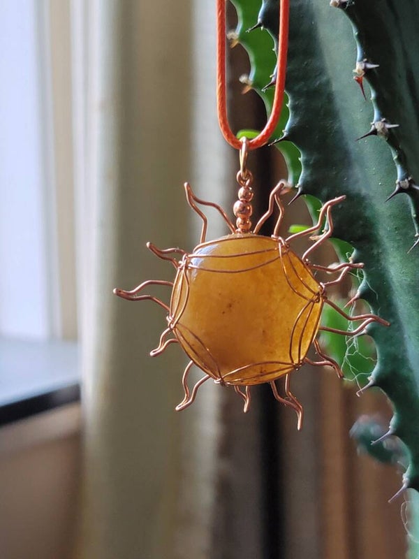 Pendant & Necklace Honey Calcite Sun Cabochon wrapped in copper.