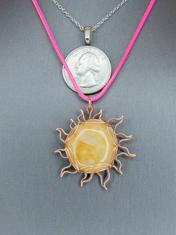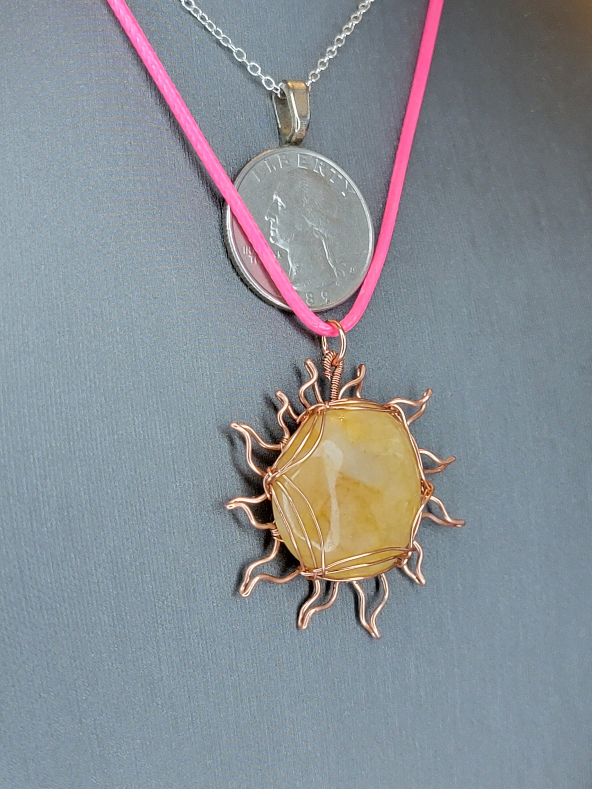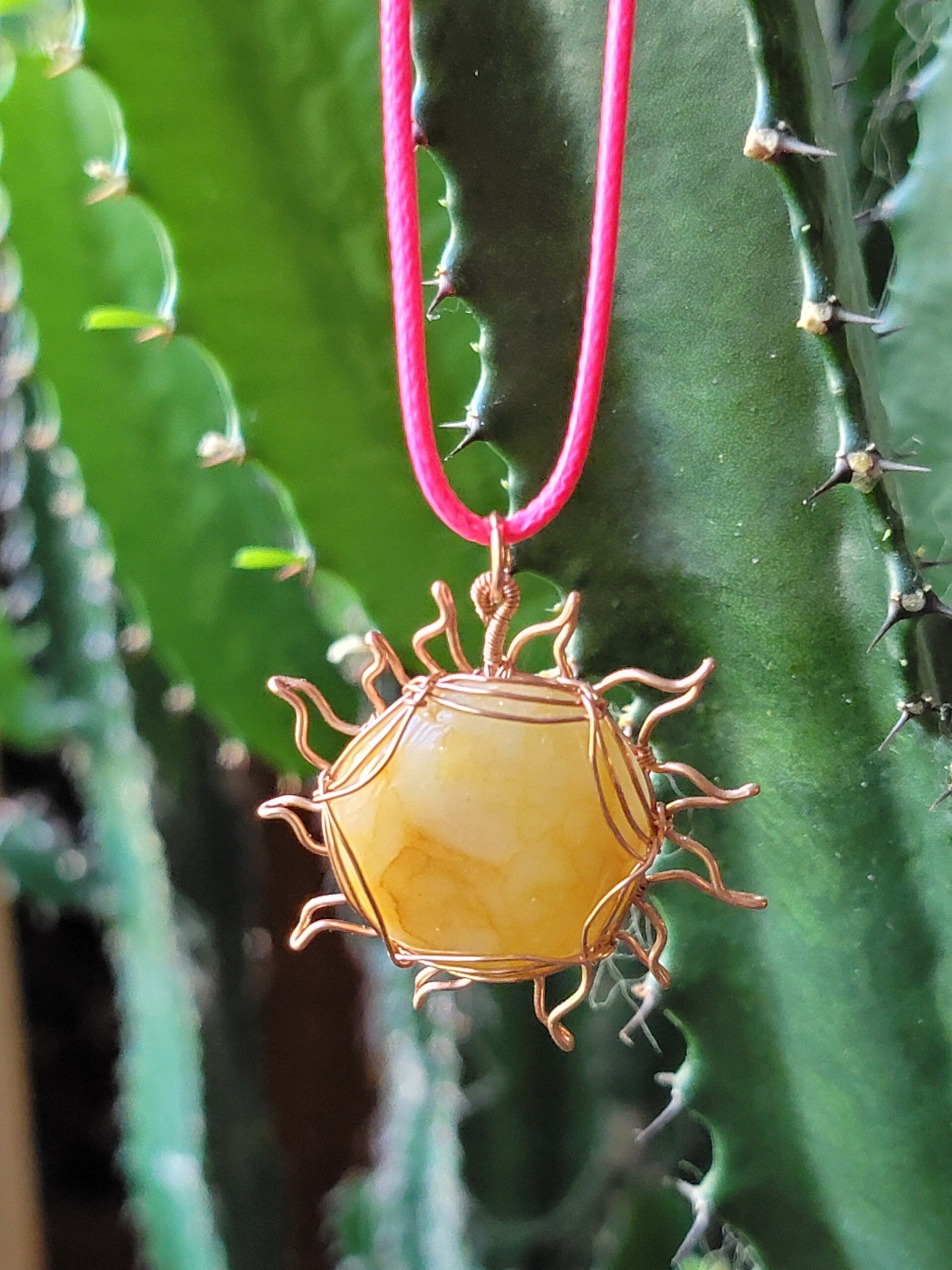 Pendant & Necklace, Sunstone Sun Cabochon, wrapped in copper.