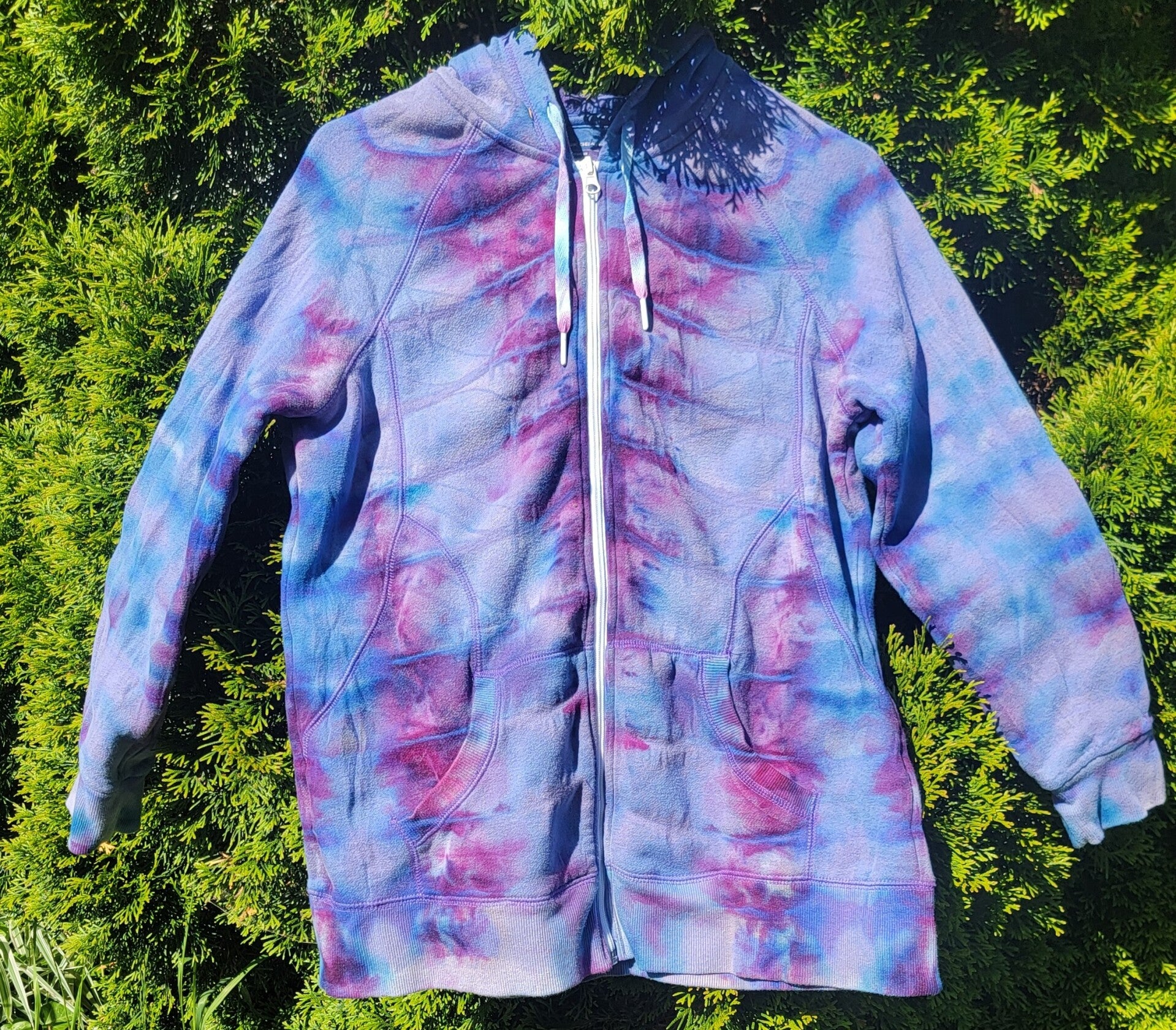 Tek Gear long sleeve hooded sweatshirt in lilac reverse dyed with fushia purple and teal. Medium fleece