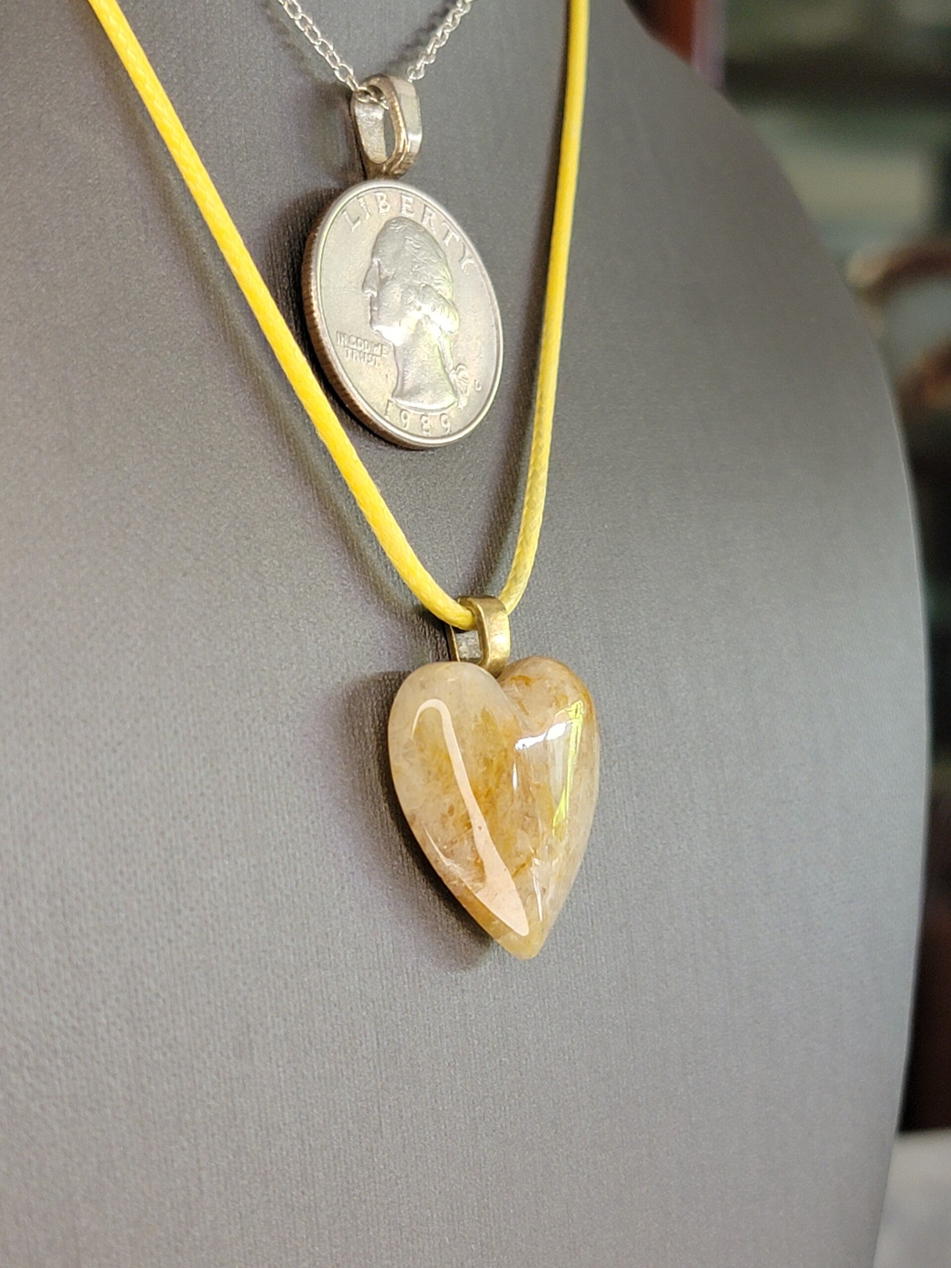 Pendant & Necklace, Sunstone Cabochon Heart