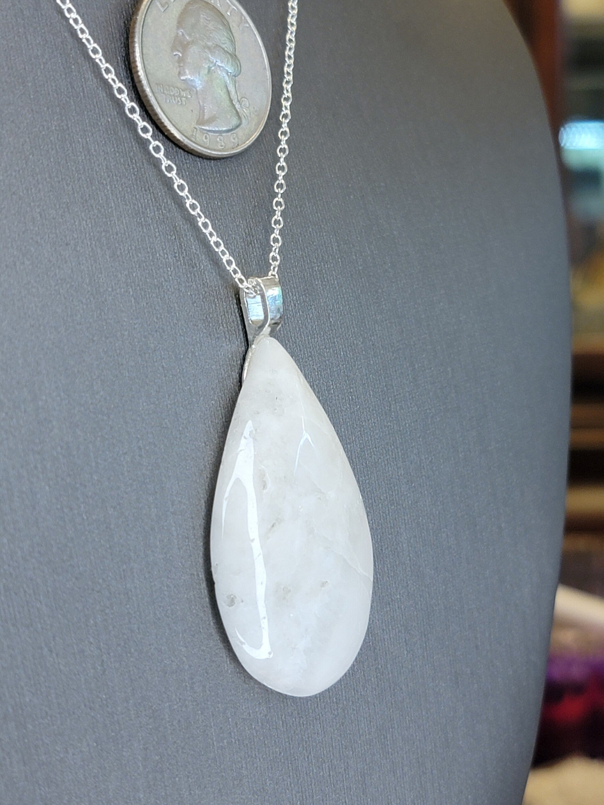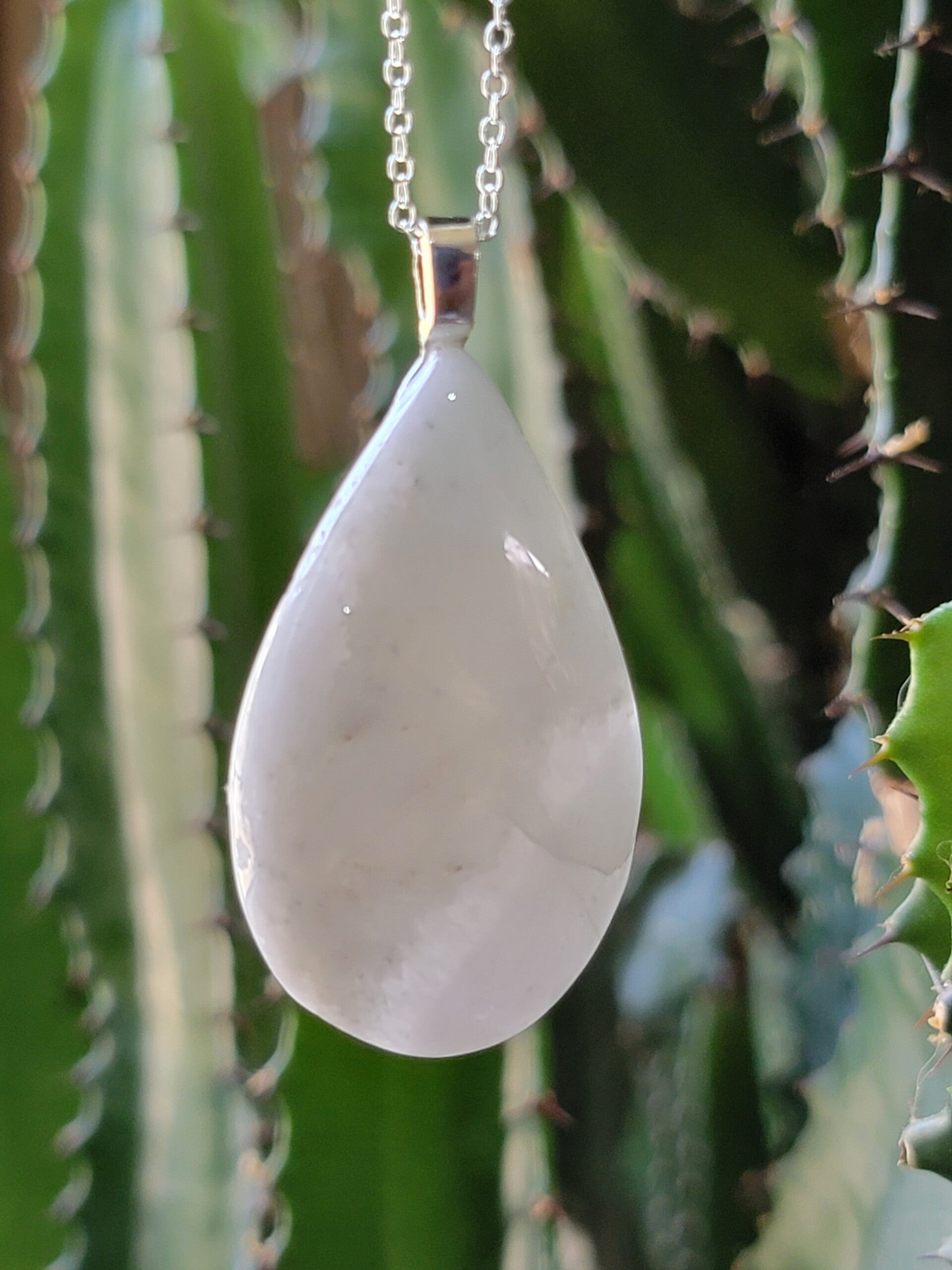 Pendant & Necklace White Jasper, Cabochon Teardrop shaped.