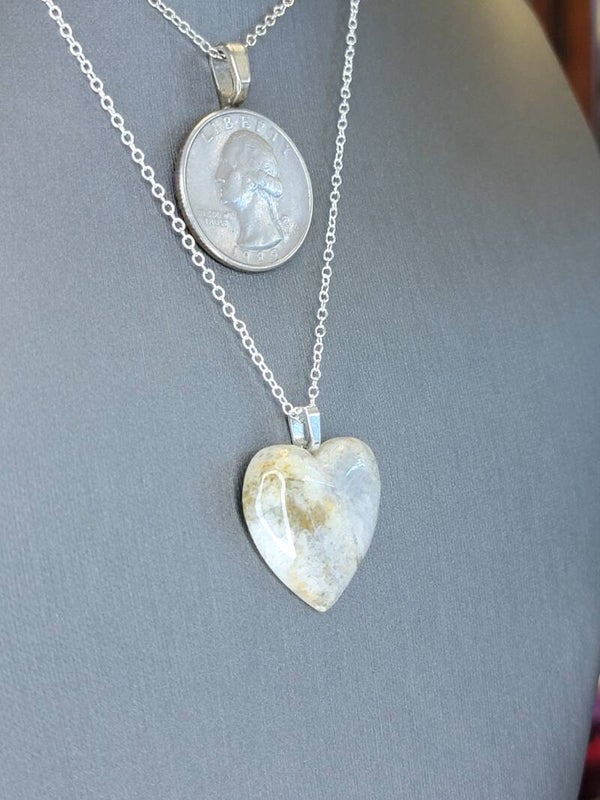 Pendant & Necklace, Ocean Jasper Heart Cabochon.