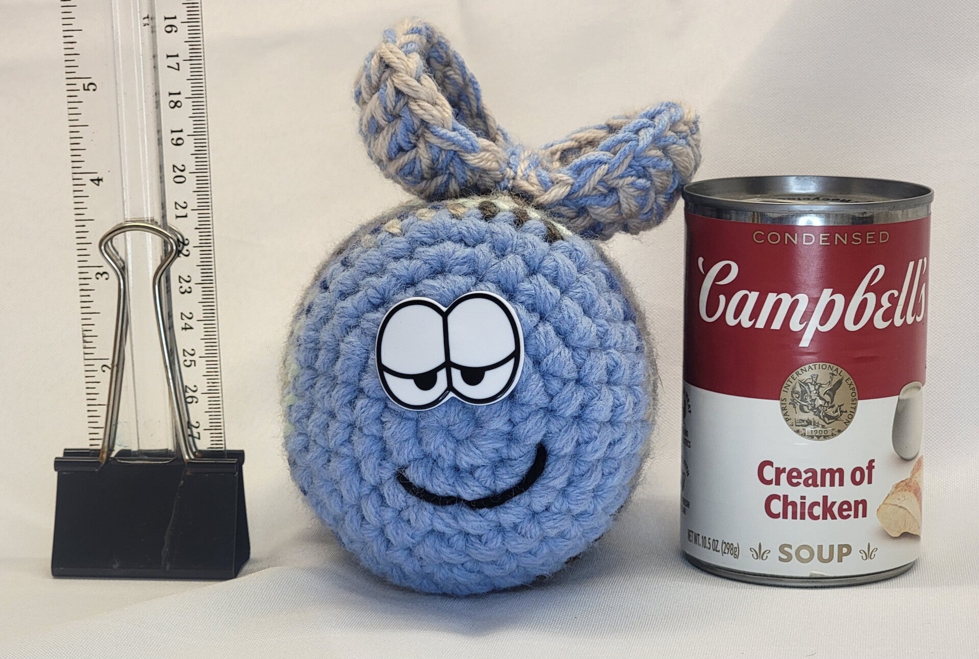 "Buzzed" blue bee with a silly smile and sleepy eyes
