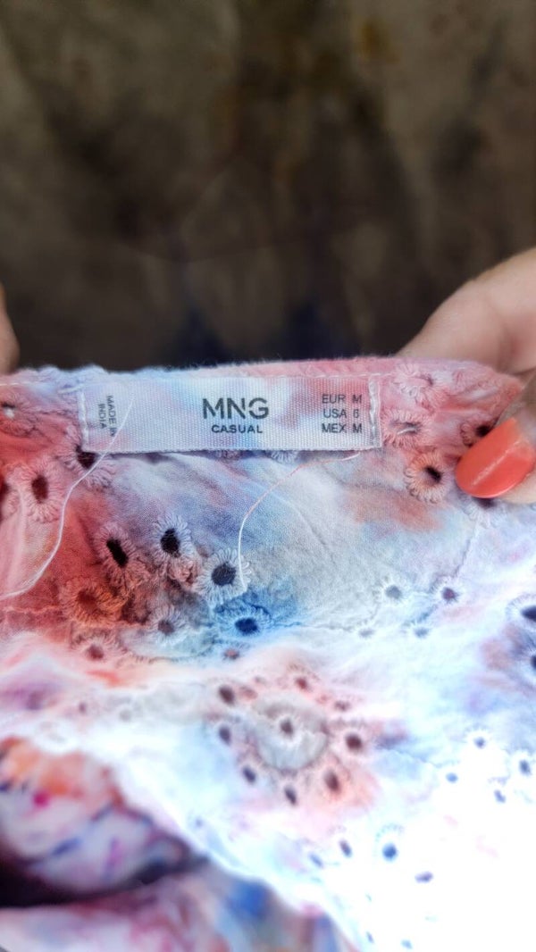 MNG Casual eyelet sleeveless dress. Side zipper and v-back with a waist tie in the back