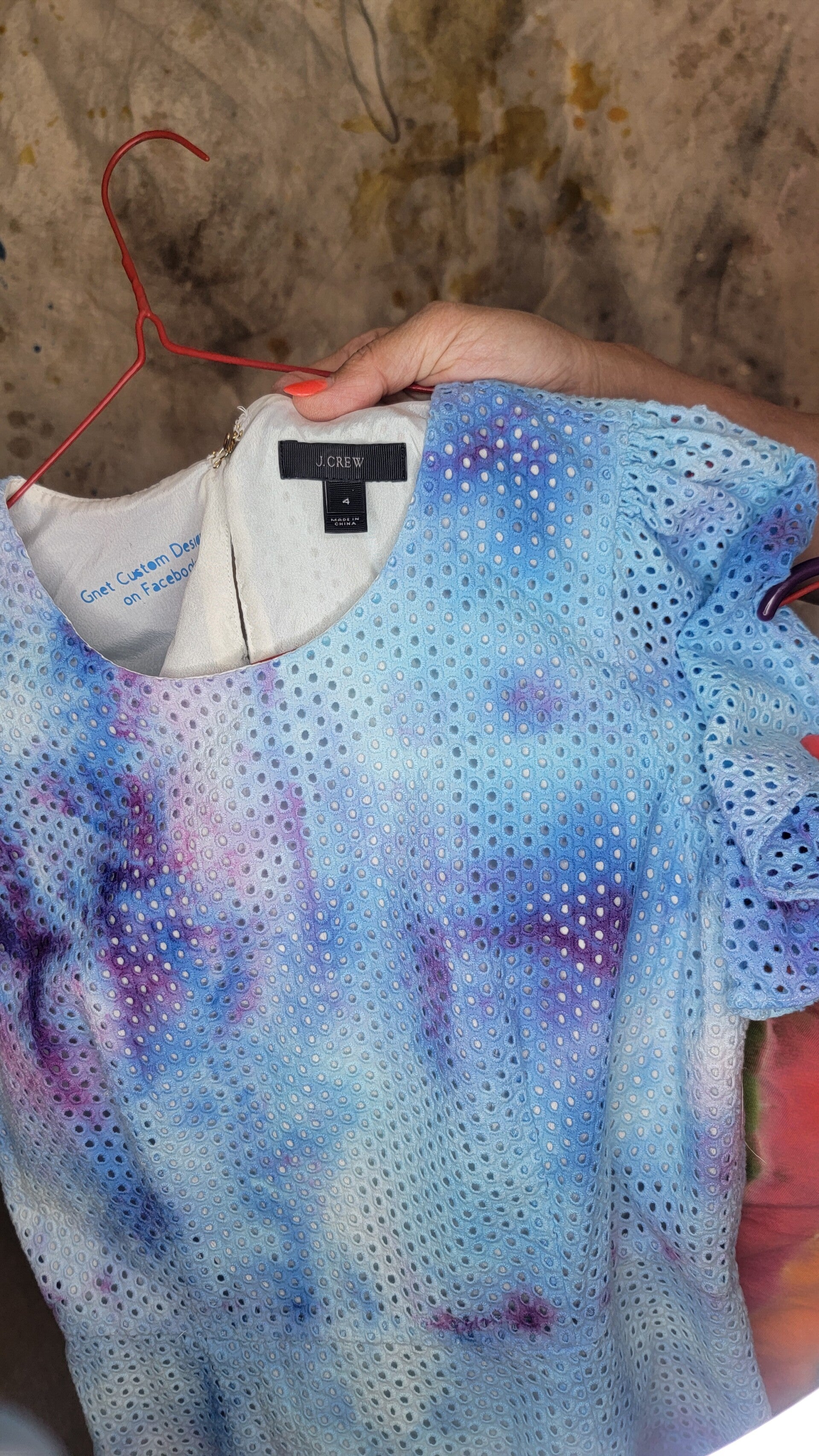 J. Crew eyelet short sleeved dress with a silky lining. Back zipper and cinched waist and pleated chest