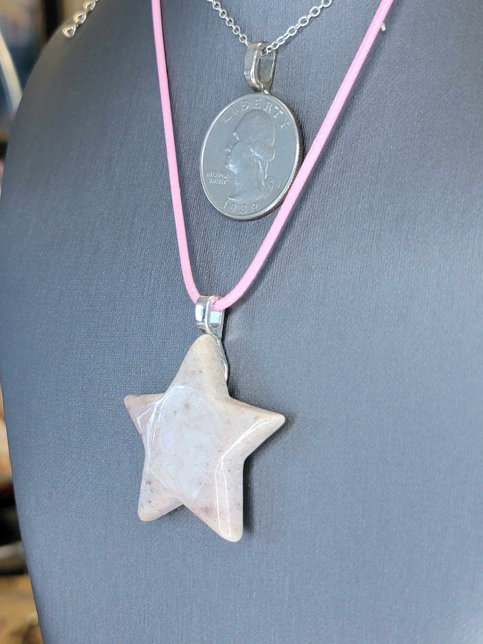 Pendant & Necklace Rhodonite Star shaped cabochon.