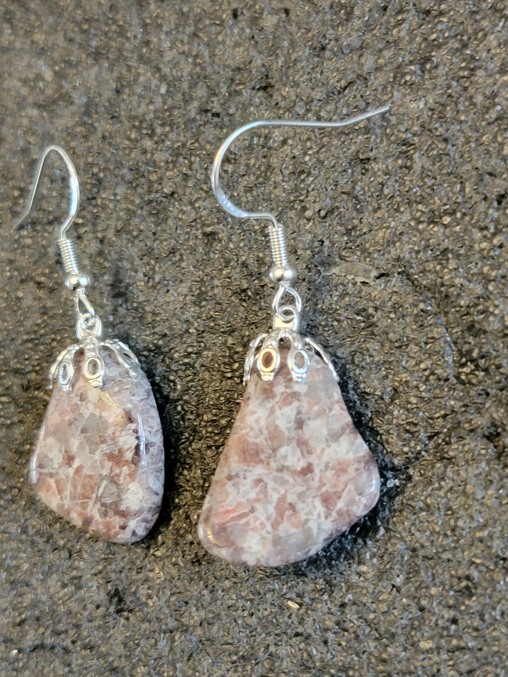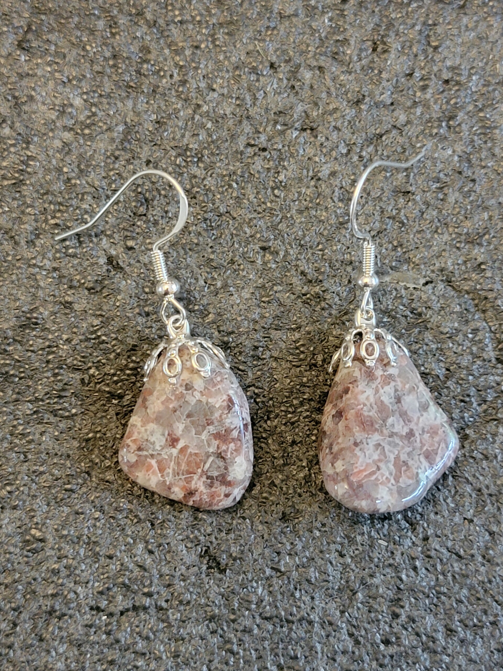 Earrings, Brecciated Jasper & Quartzite, tumbled stone