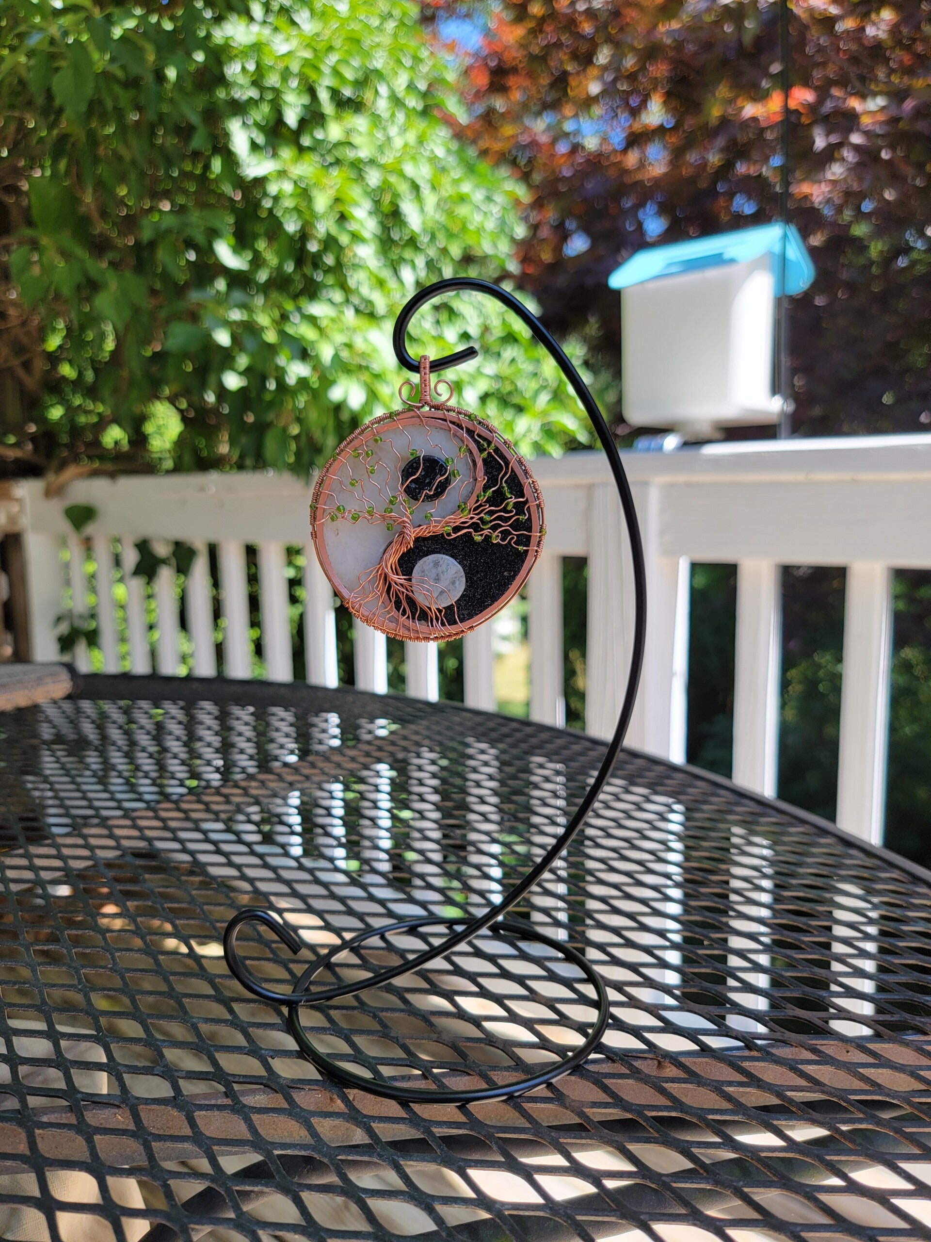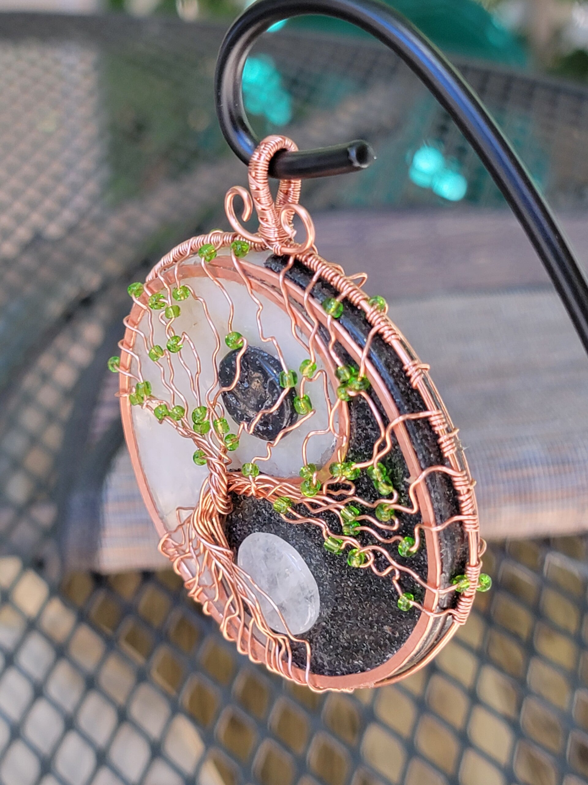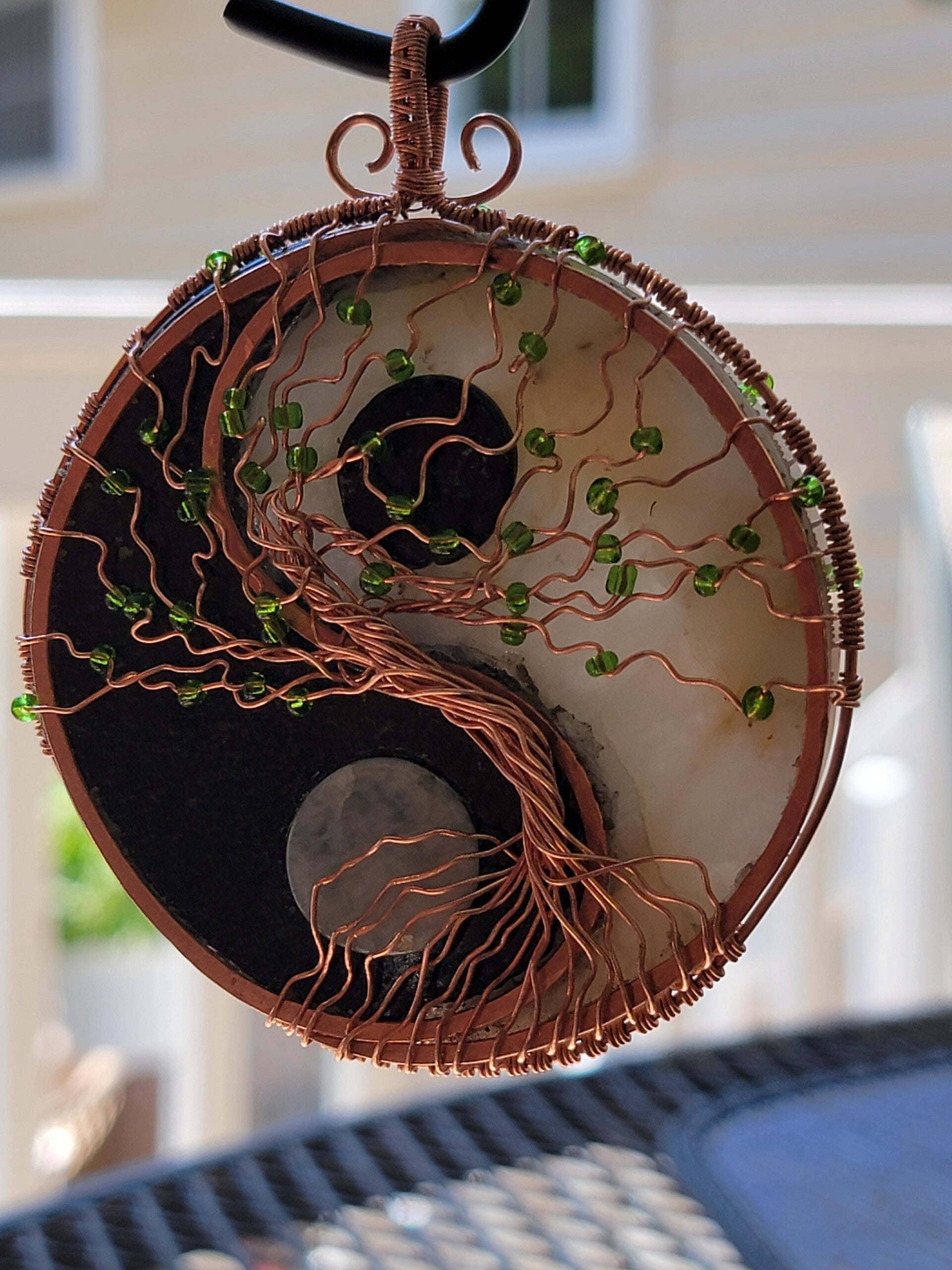 Pendant, Necklace, and table top art. Yin-Yang with two trees of life.
